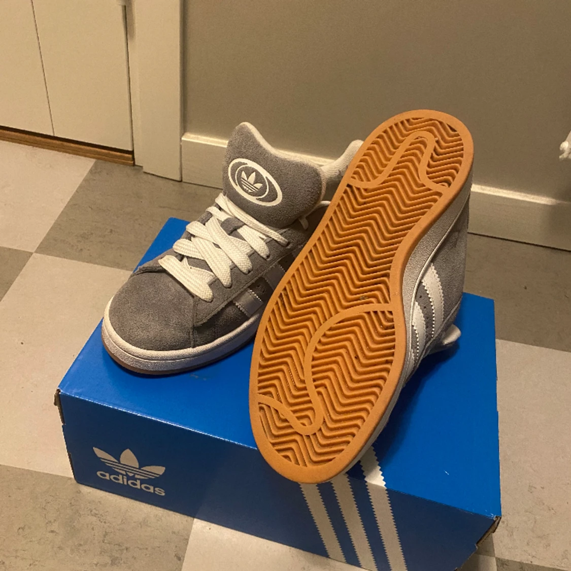 Säljer dessa adidas campus 00s i super bra skick! Låda medföljer + nya snören