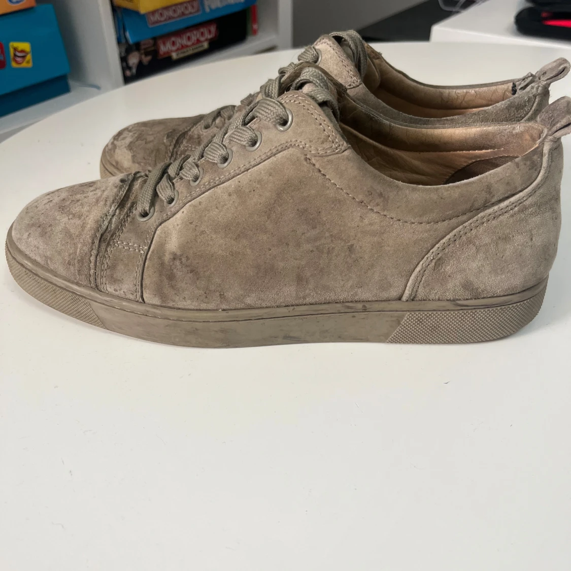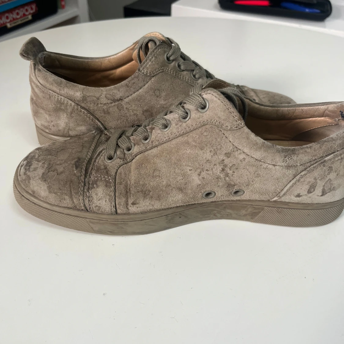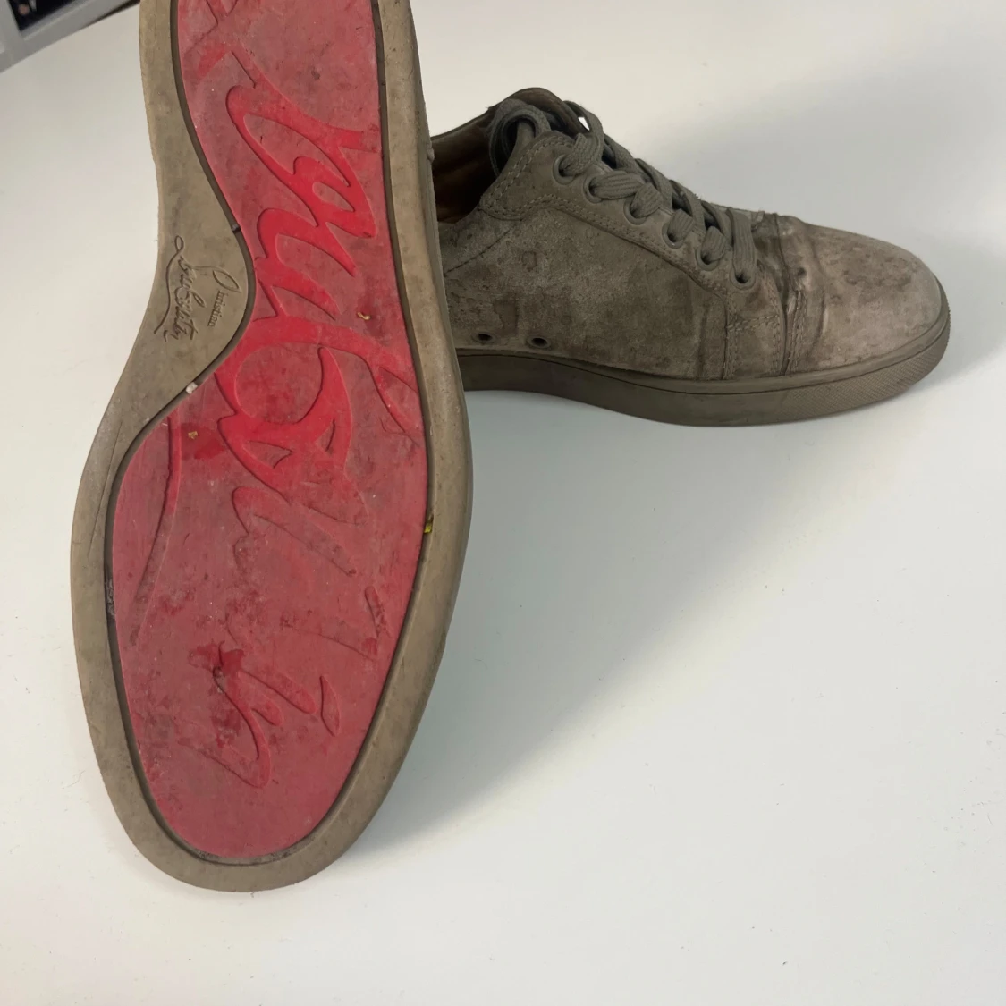 Loubs som inte är i så bra skick så därför priset är lågt. En fläck på mockan som är oklar om den går att ta bort. Tar byten