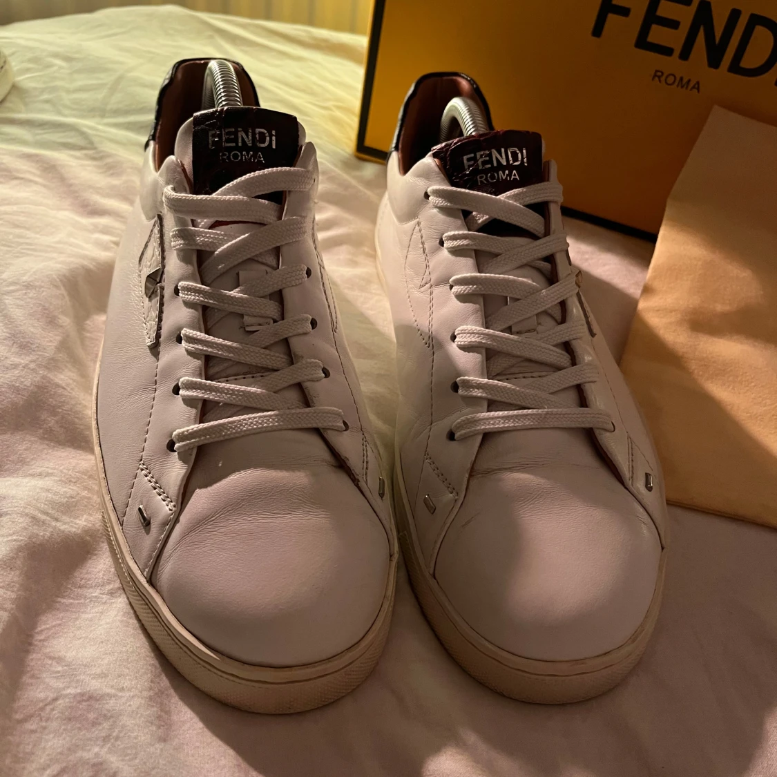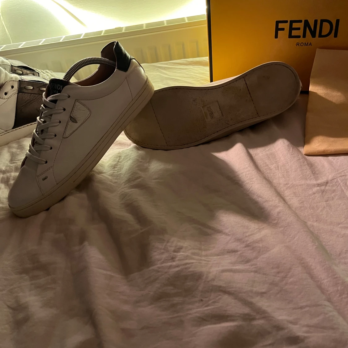 Snygga vita sneakers från Fendi myps ligger någonstans mellan 5000-6000 och de är i super bra skick och passar båda 42 och 42 i vissa fall jag tar gärna emot bytes förslag mot andra exclusiva varor skorna är självfallet äkta och dust av och box ingår Priset är diskuterat och jag löser gärna paket pris med andra varor