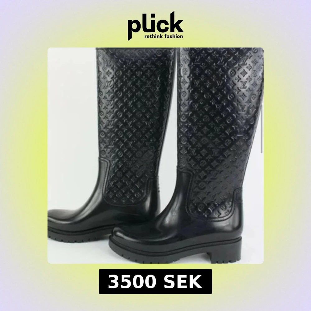 Snygga svarta stövlar från Louis Vuitton med det ikoniska monogrammönstret. Stövlarna har en robust sula och är perfekta för en stilren look. De är tillverkade i ett glänsande material som ger en lyxig känsla. Storlek 37 men passar även 36