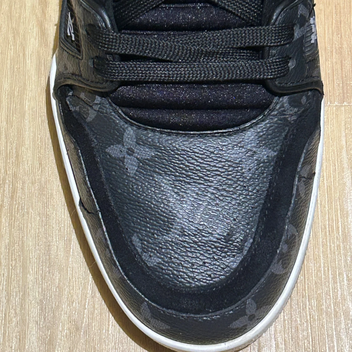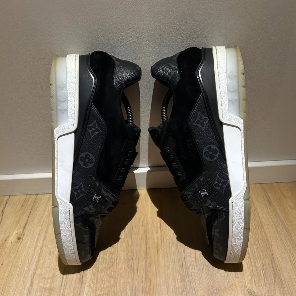 Säljer ett par riktigt snygga Louis Vuitton Trainers (8 1/2) som är i fint använt skick. Skorna är i storlek 42,5 (8 1/2) fast jag har storlek 44 och dem passar mig utmärkt, så dem är stora i storlek. Skorna har endast små defekter på utsidan och men ser väldigt bra ut. På insidan vid hälarna så har tyget släppt lite men det är inget som syns. Kartong medföljer men har inte den just nu då den är hos morsan. Hör bara av er om ni vill ha mer info eller mer bilder!