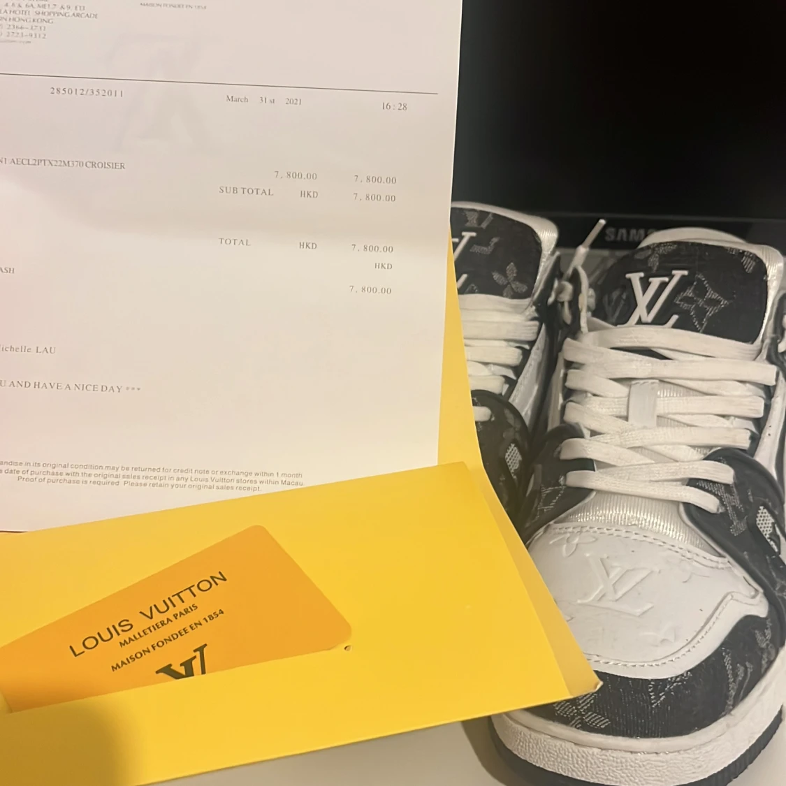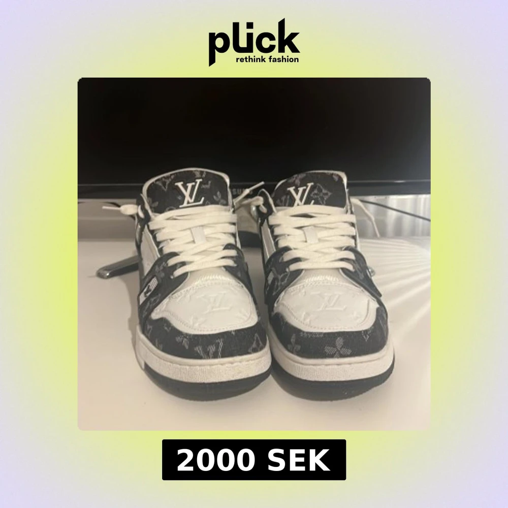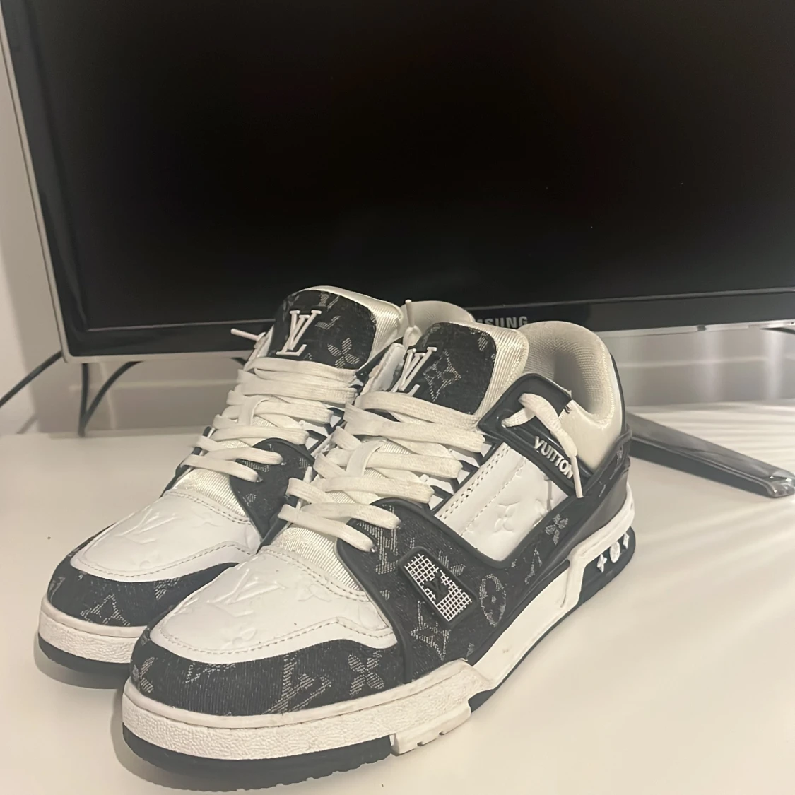 Säljer ett par Louis Vuitton sneakers i svart och vitt med klassiskt LV-mönster. Skicket är 10/10 använder aldrig skorna eftersom de inte passar mig.