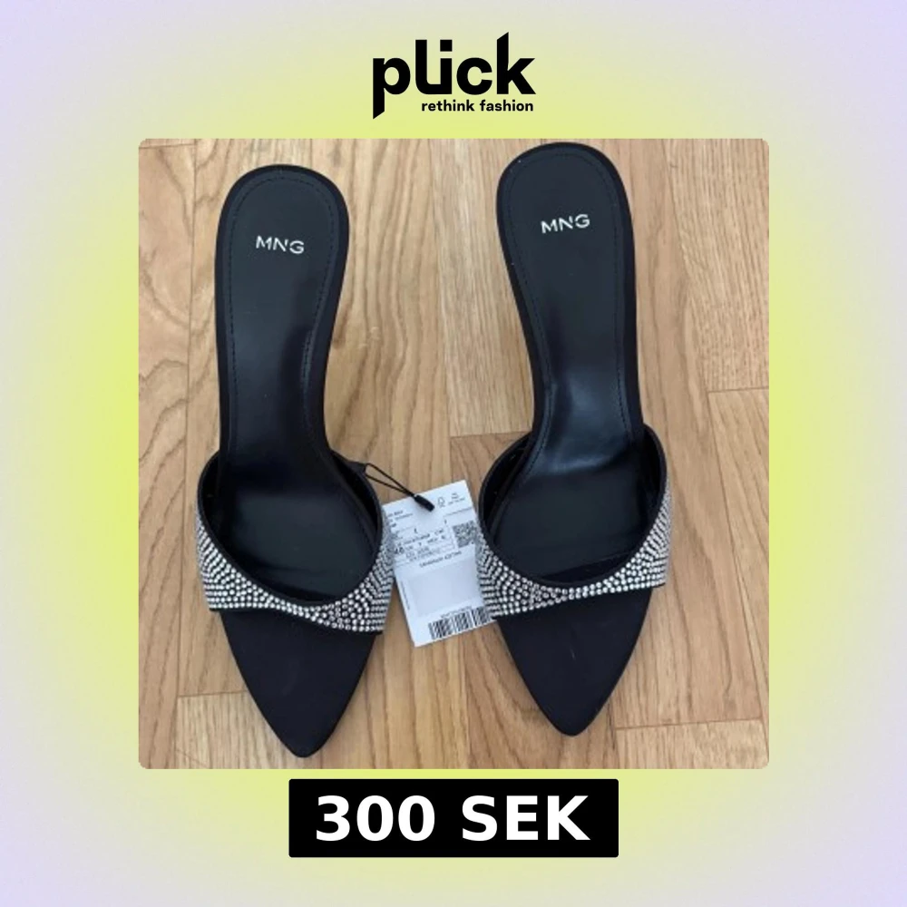 Glittriga klackar med öppen tå ifrån mango. Storlek 40. De är helt oanvända med prislappen kvar, då de vart lite för stora för mig.