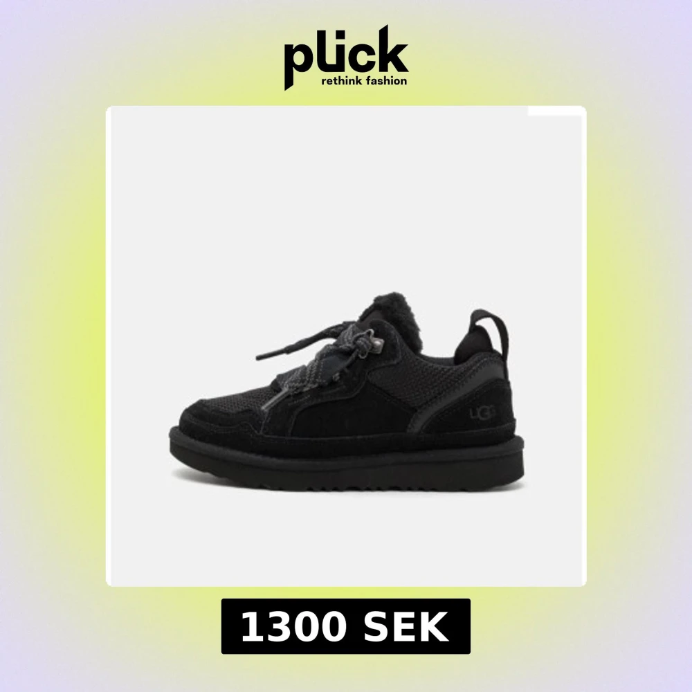 Säljer ett par svarta sneakers från UGG med grov snörning och platt sula. Skorna har en mix av mesh och mocka på ovansidan samt en mjuk pälsdetalj vid öppningen. Perfekt för dig som gillar stilrena och bekväma skor. Dem är använda nu i början på vintern bara, fint skick, det är dem bekvämaste skorna jag har men vill ha en annan färg därför säljer jag dem.