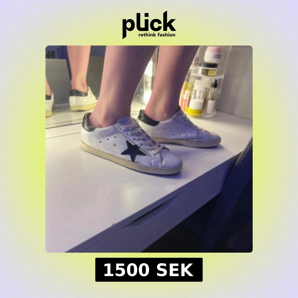 Hej hej allihopa just nu så säljer jag min lillasysters golden goose skor som är i storlek 39 men passar även de i storlek 40 skon är unisex och ser bra ut både på tjejer och killar. Ni får själv avgöra skicket på skorna utifrån bilderna som bifogats och om du vill ha fler bilder så är det bara att skriva. Skorna är köpta via golden goose hemsida för 5600 I en vit model sedan så är de ommålade till svart stjärna hos en skomakare som specialiserar sig på golden goose. jag tar gärna byten. :)