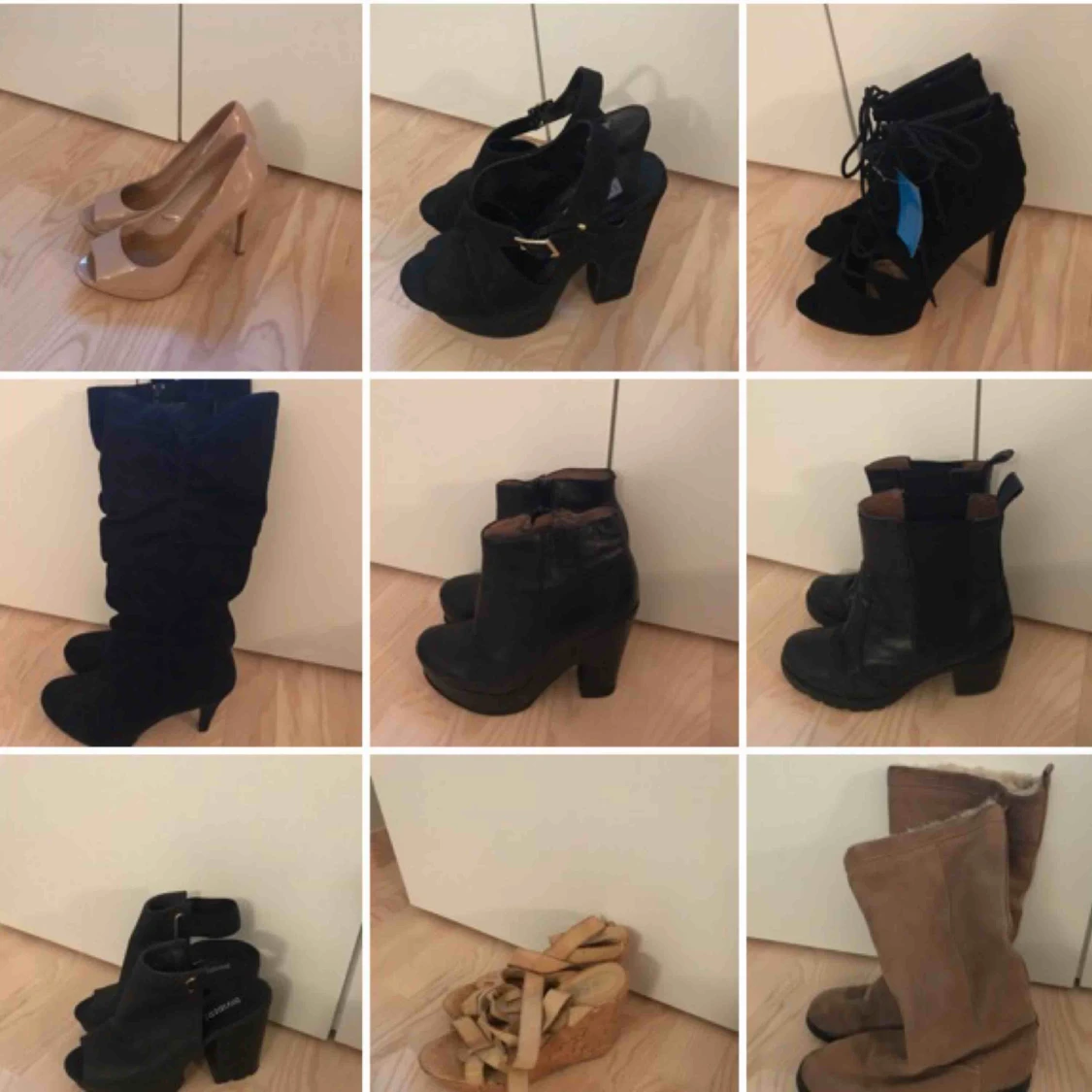 Paketpris - 9 par skor - storlek 38! Flera av skorna är oanvända. Bland annat ett par Steve Madden, svarta stövlar i äkta mocka, beiga och svarta pumps. Finns att hämta på Kungsholmen.