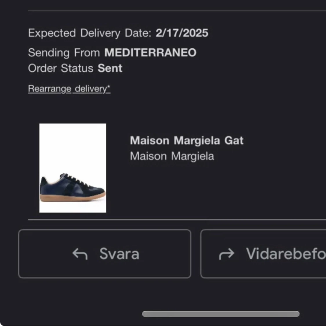 Säljer ett par feta blåa maison margiela gats i storlek 42. Skorna kommer med box,shoe dustbag osv.Skorna är använda men tecken på användning syns inte med det blåa ögat. Priset går att diskuteras vid snabb affärer. Om du har några frågor/funderingar är de bara att skicka ett dm🤩