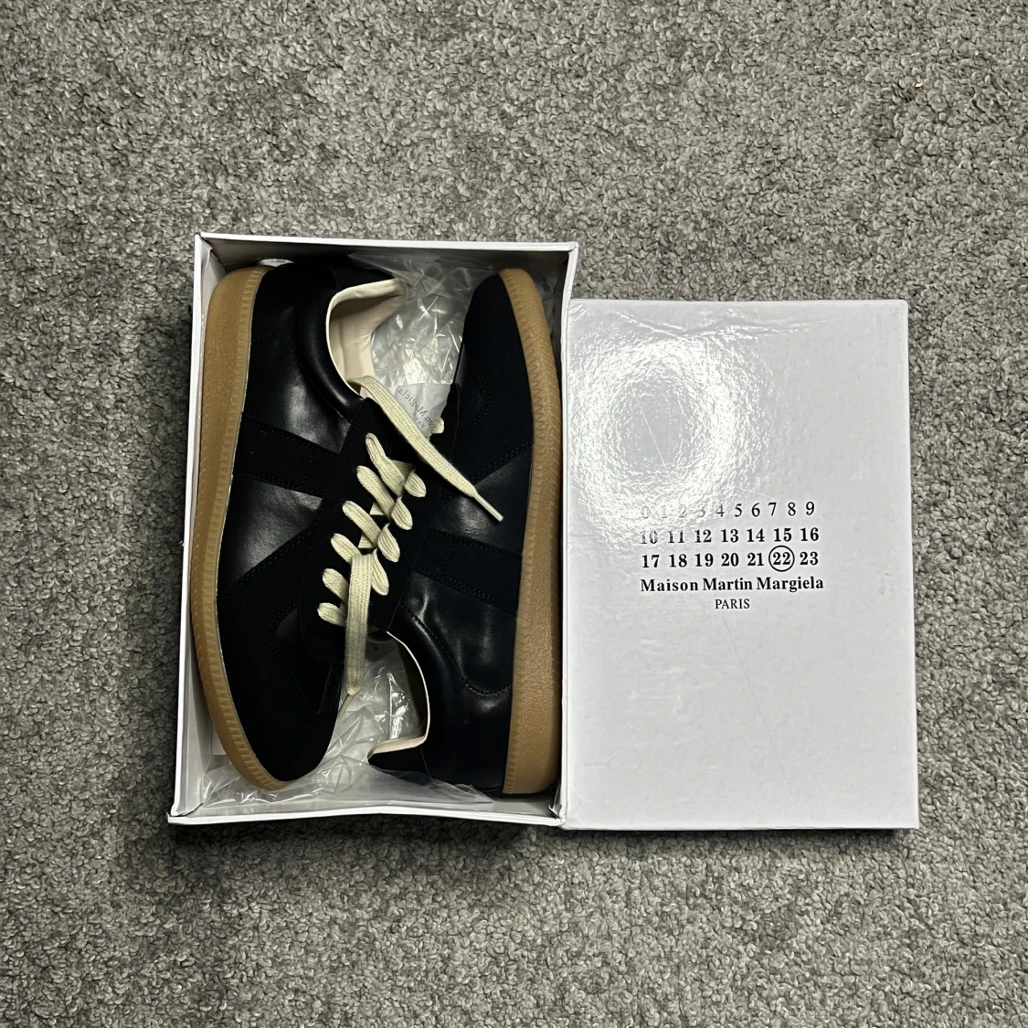 Maison Margiela GATs – Svarta (Storlek 43) 🖤 Säljer ett par stilrena och eftertraktade GATs från Maison Margiela i svart skinn – ikoniska sneakers med lyxig känsla och perfekt passform. Fråga för fler bilder • Storlek: 43 • Skick: aldrig använda • Nypris: ca 6000 kr • Snittpris på plick: ca 3000 kr 💡 Köpta via Plick. Tidigare ägare uppgav att de är äkta och visade kvitto, men jag kan inte garantera äktheten – därav det låga priset. 📦 Obs: Lådan är lite trasig, därav billiga priset!