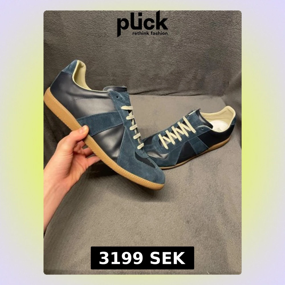 Säljer ett par snygga gats från Maison Margiela i mörkblått skinn och mocka med beige snörning och gummisula. Klassisk rund tå och platt sula, perfekt för dig som gillar stilrena och coola skor med retrovibe. Aldrig använda. Nypris runt 8000. Skriv vid frågor, priset är inte hugget i sten🤝