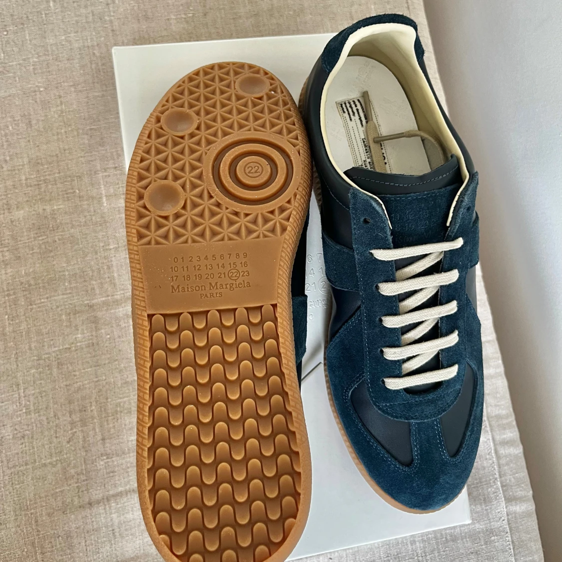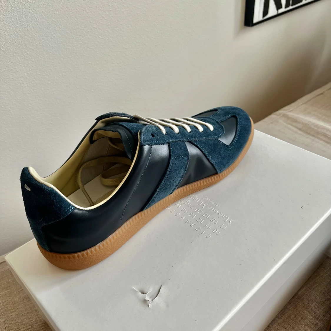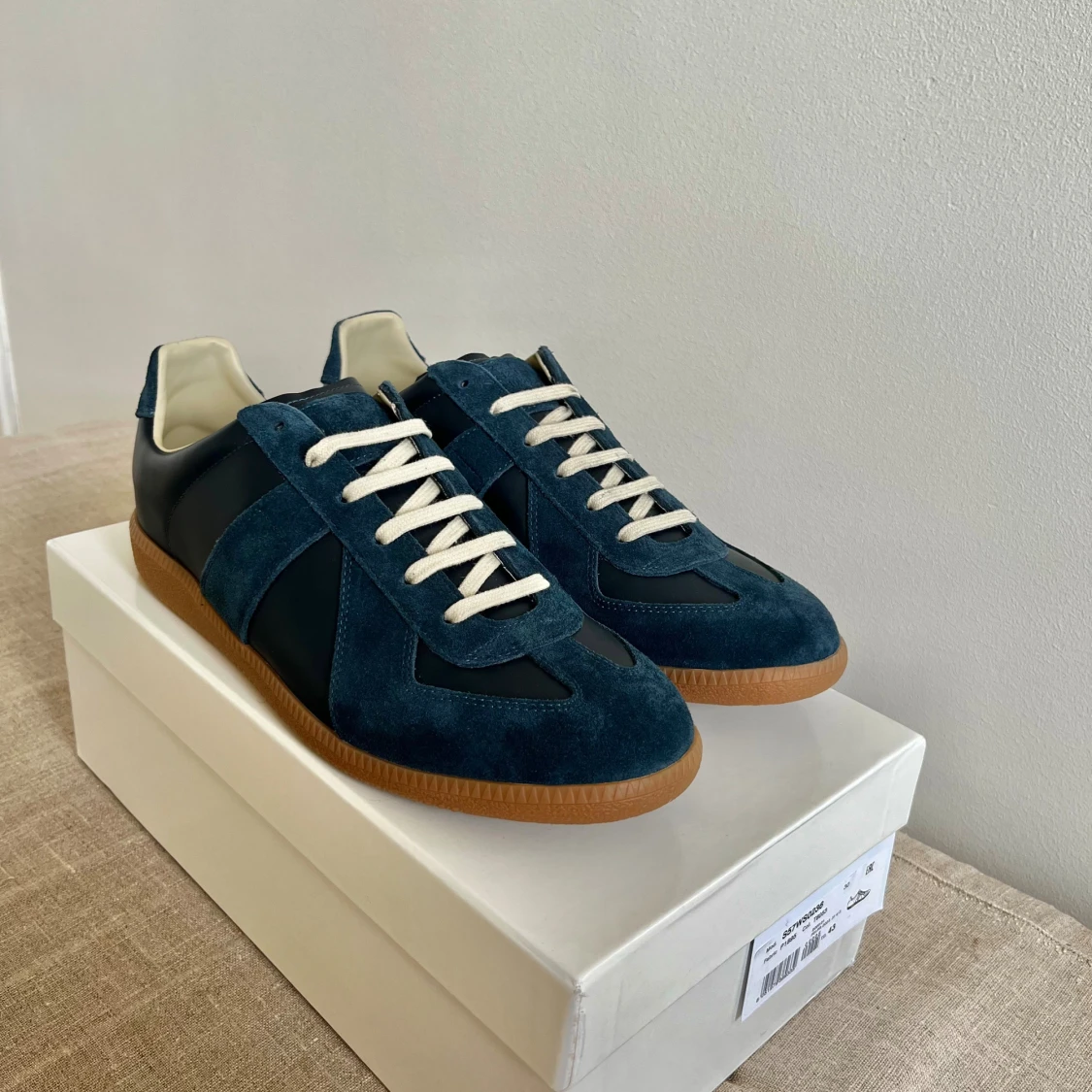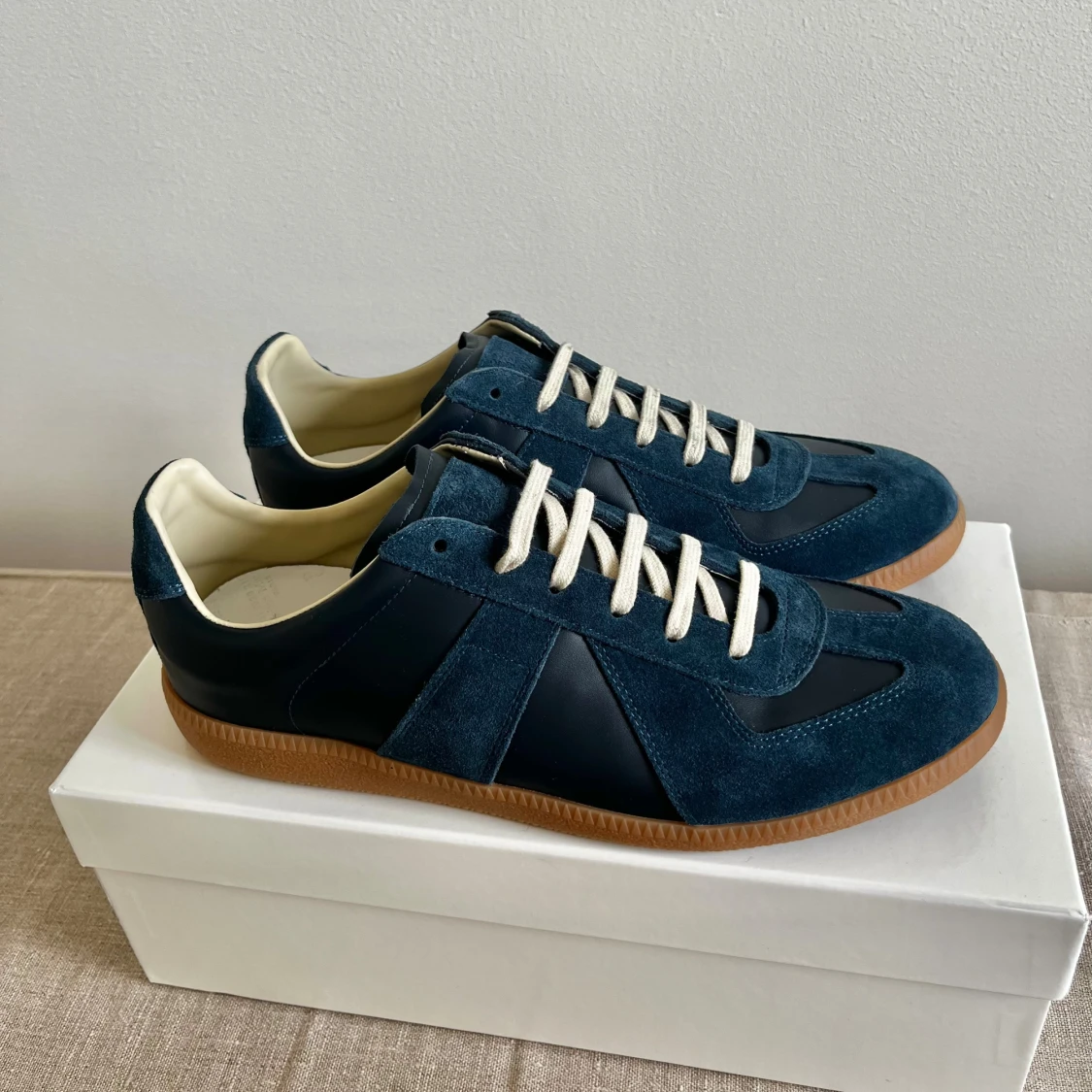Ett par mörkblåa gats i storlek 43 | Skick 9/10, nästintill oanvända | Box följer med, men finns en liten spricka på den (syns på bild 4) | Pris kan diskuteras och skriv vid frågor!