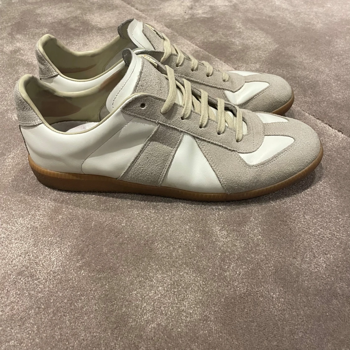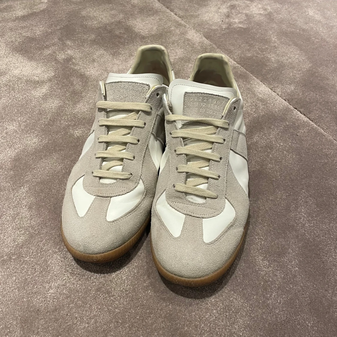 Maison margiela gats i skick 7/10 köptes på plick förra våren och har använts ganska mycket då de har varit mina main skor större delen utav året. Därav har de creasats en del och också varför priset är så lågt annars finns inga deffekter. Priset är inte hugget i sten kan tänka mig att gå ner vid en snabb affär. Vid frågor och funderingar är de bara att höra av sig! Skolåda tillkommer.😁👍