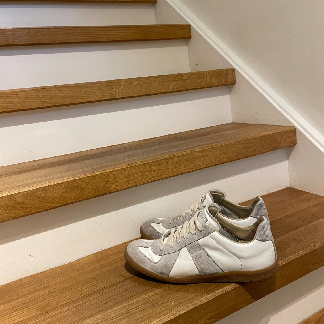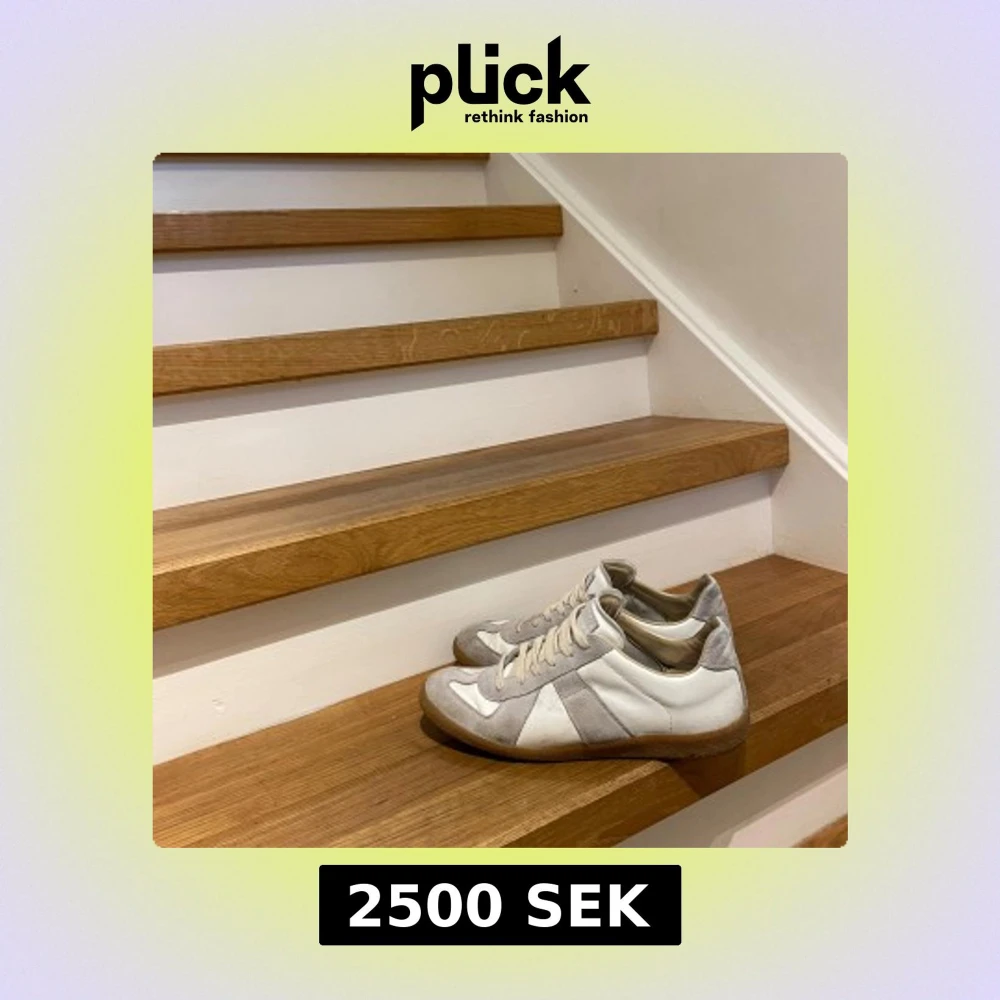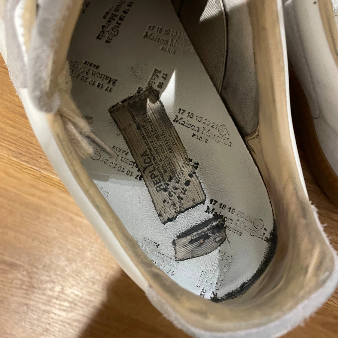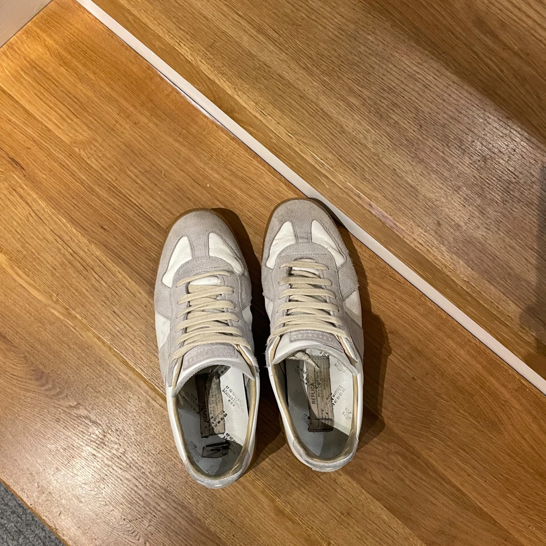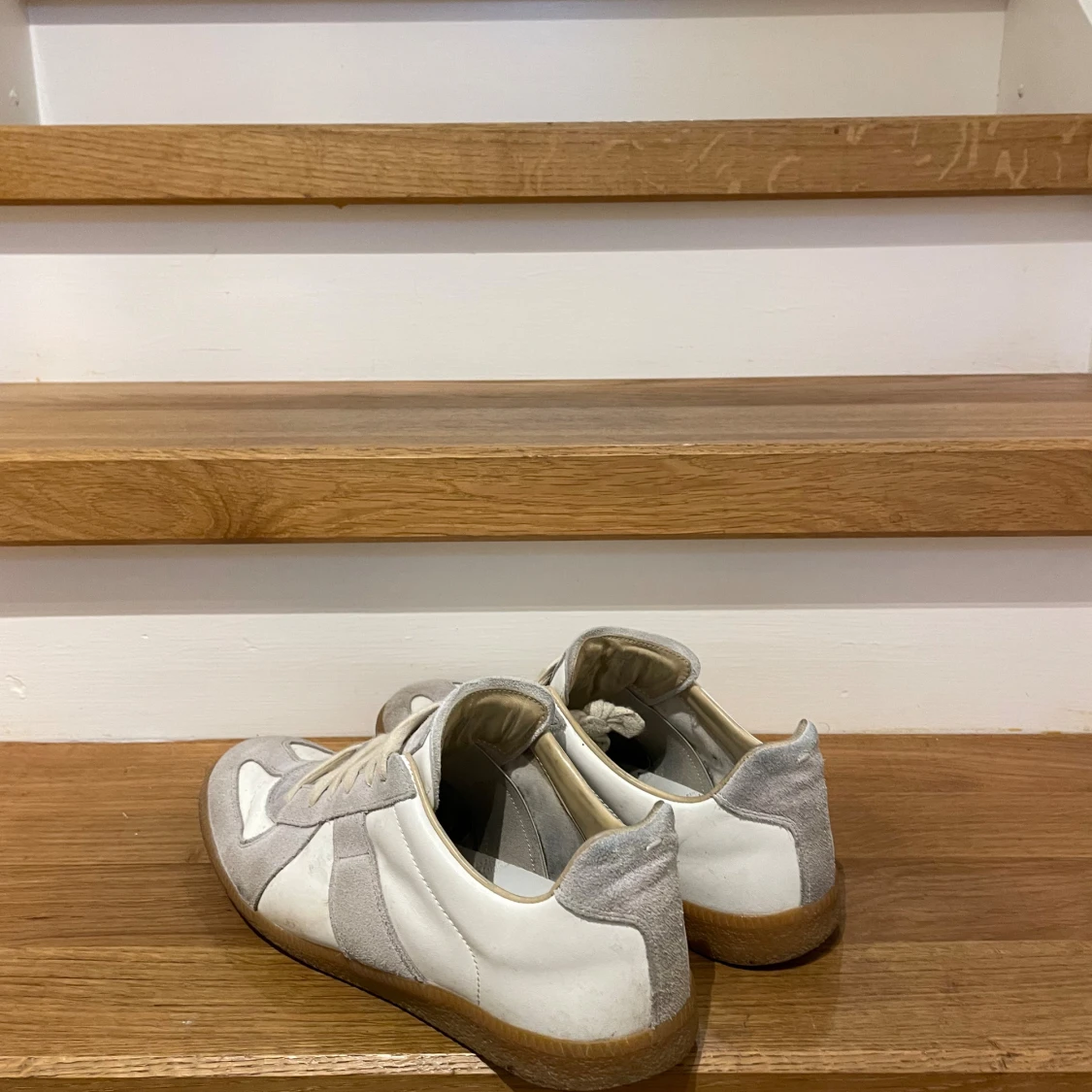 Snygga sneakers från Maison Margiela i vitt och ljusgrått med klassiska paneler i mocka och skinn. Perfekt för dig som gillar minimalistisk och stilren design. Har en defekt i lappen på insidan av användning, annars så är de i bra skick. Finns även låda med tillbehör kvar. Hör av dig vid frågor 😁