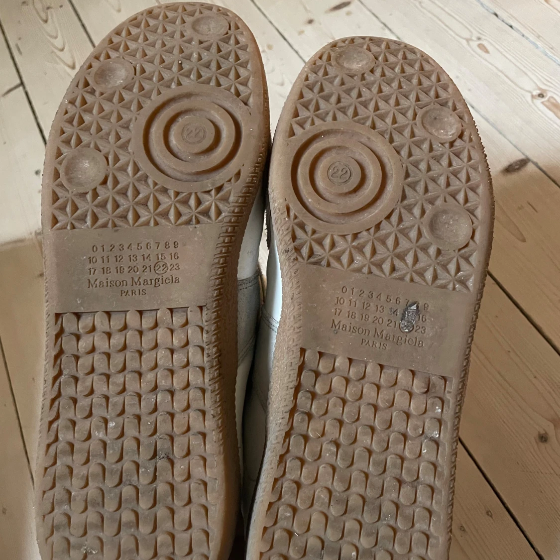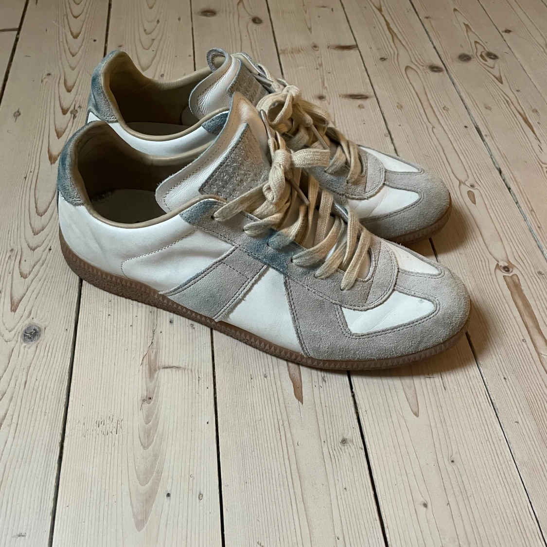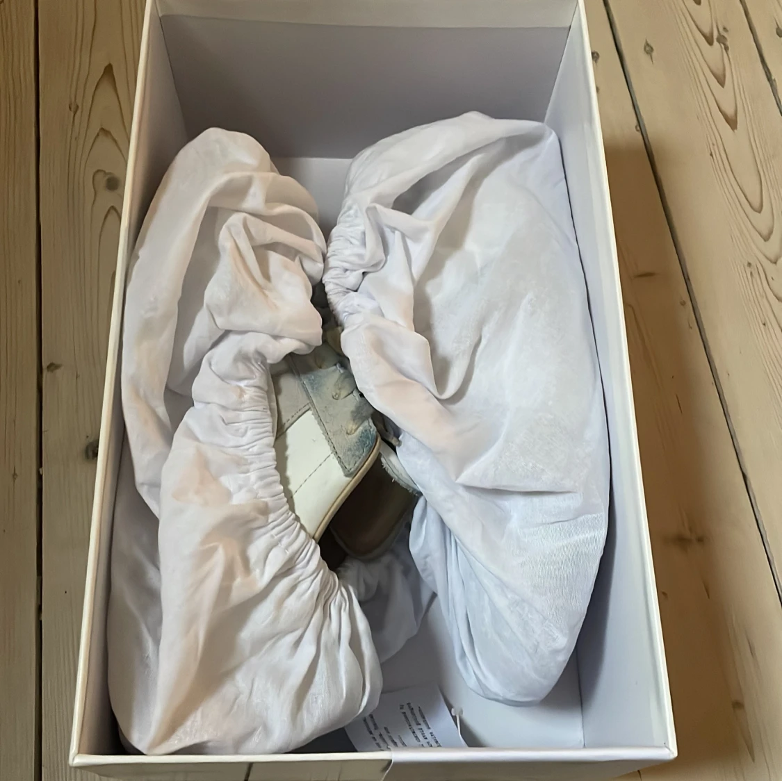 Säljer nu dessa vita maison margielas , låda ingår, storlek 43! Skorna är INTE äkta men är samma kvalitet som originalet