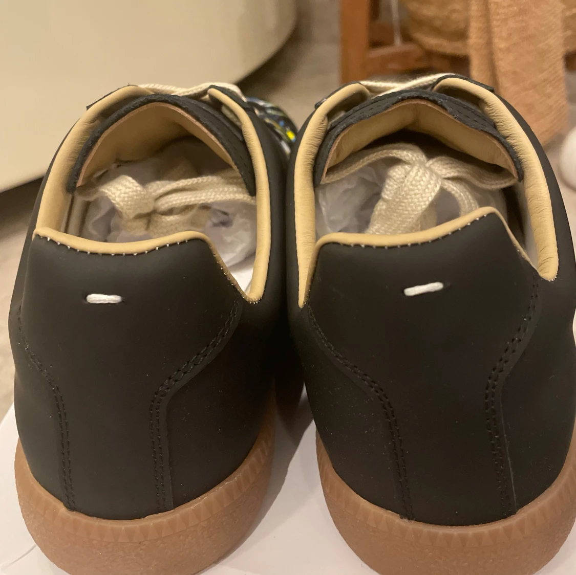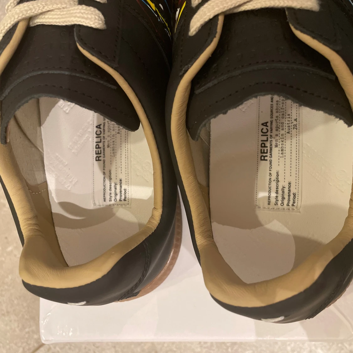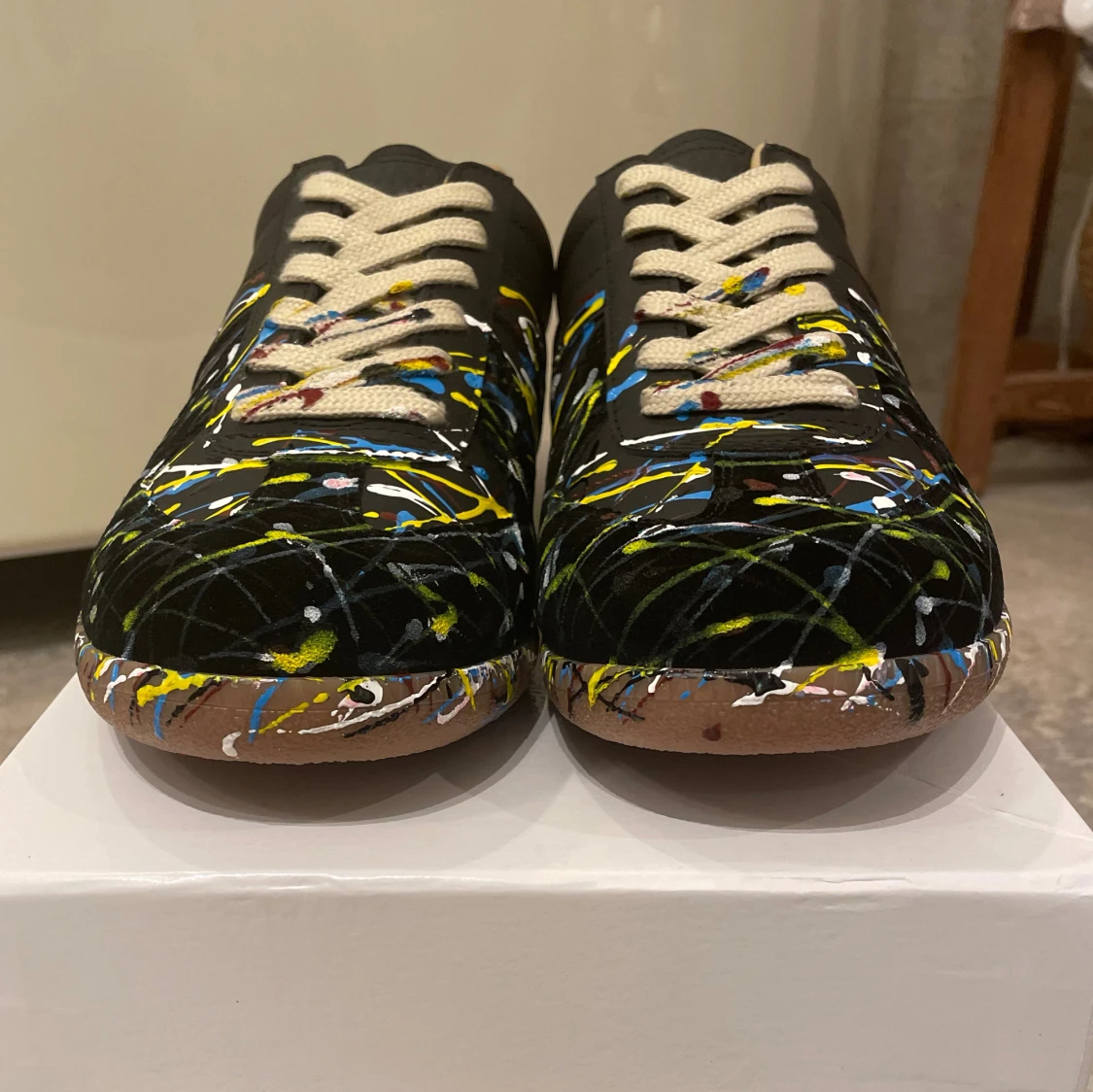 Säljer dessa riktigt feta gats med paint splatter från Maison margiela i storlek 43. Skorna är 10/10 i skick. Box medkommer. Om du har några frågor eller funderingar, tveka inte på att höra av dej! OBS: INTE ORG1NAL.