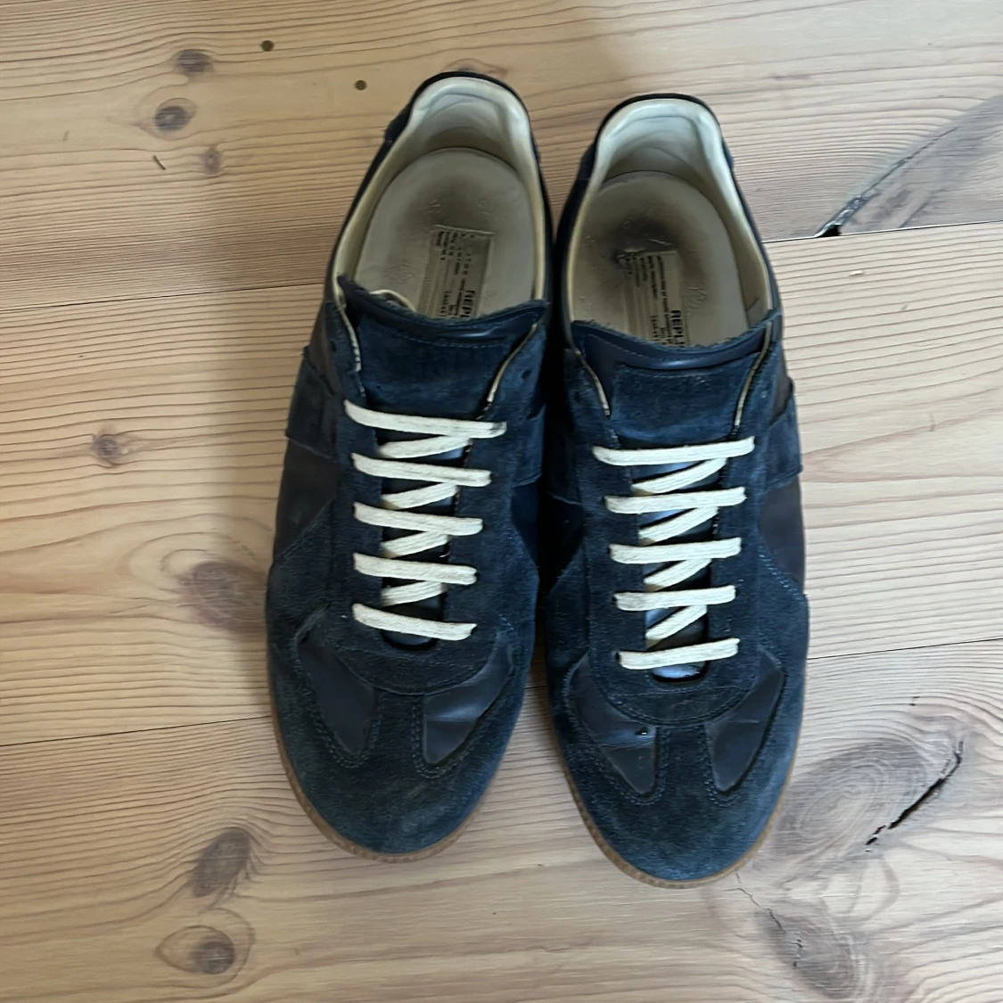 Mörkblå margiela gats, skulle säga skick 9/10, har äktehetsbevis. Köpt i juli detta året, Hör av er vid frågor!
