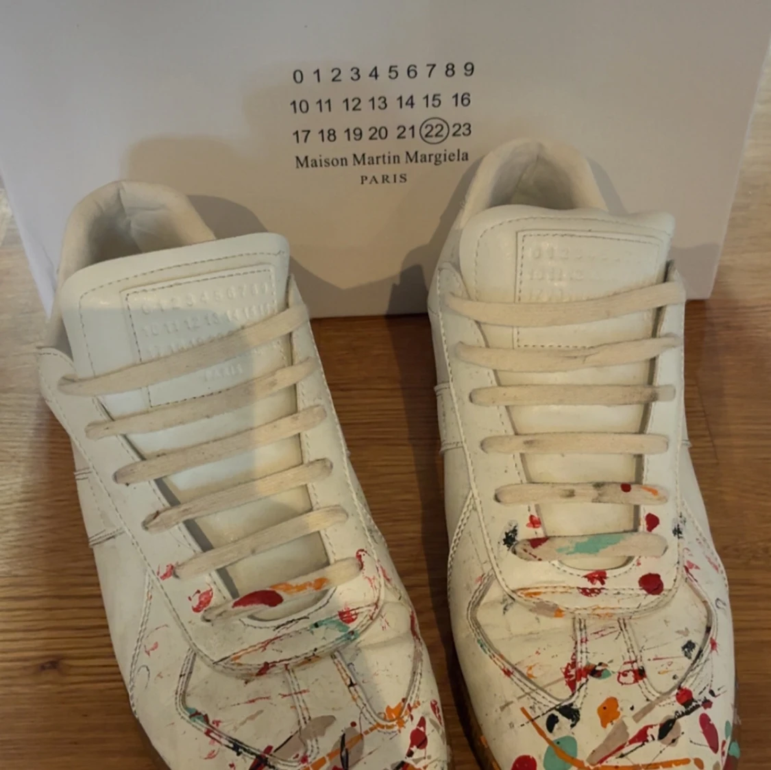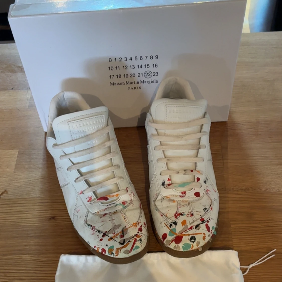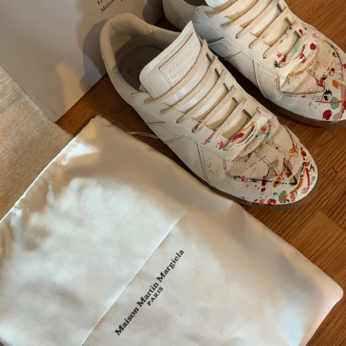 Tja! Säljer nu mina Maison margiela med paint splatter dem är i strl 44 passar 43 har gjort en egen straight lace på dem för att jag föredrar de så kan såklart ändra vid köp. Skriv om nåra funderingar.