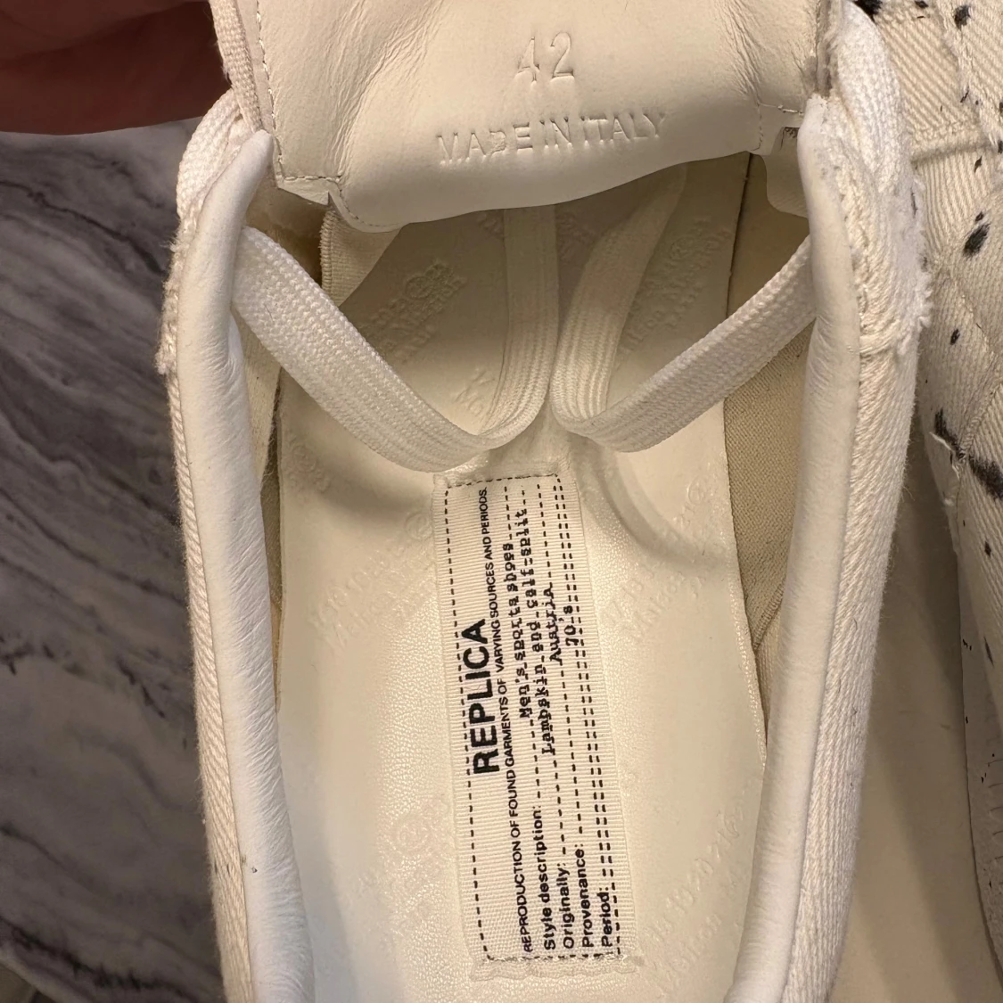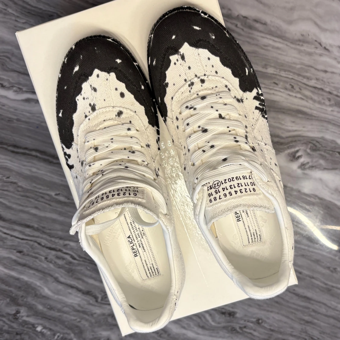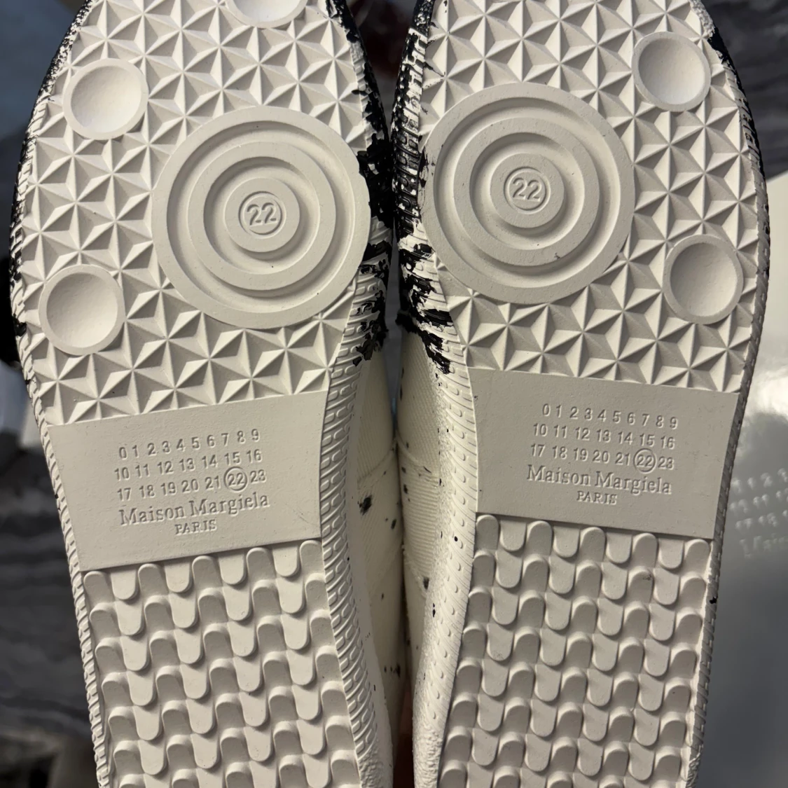Eftertraktad Maison margiela black paint splatter. I storlek 42 passar Ă€ven 43đ. Kom med frĂ„gor och budđ