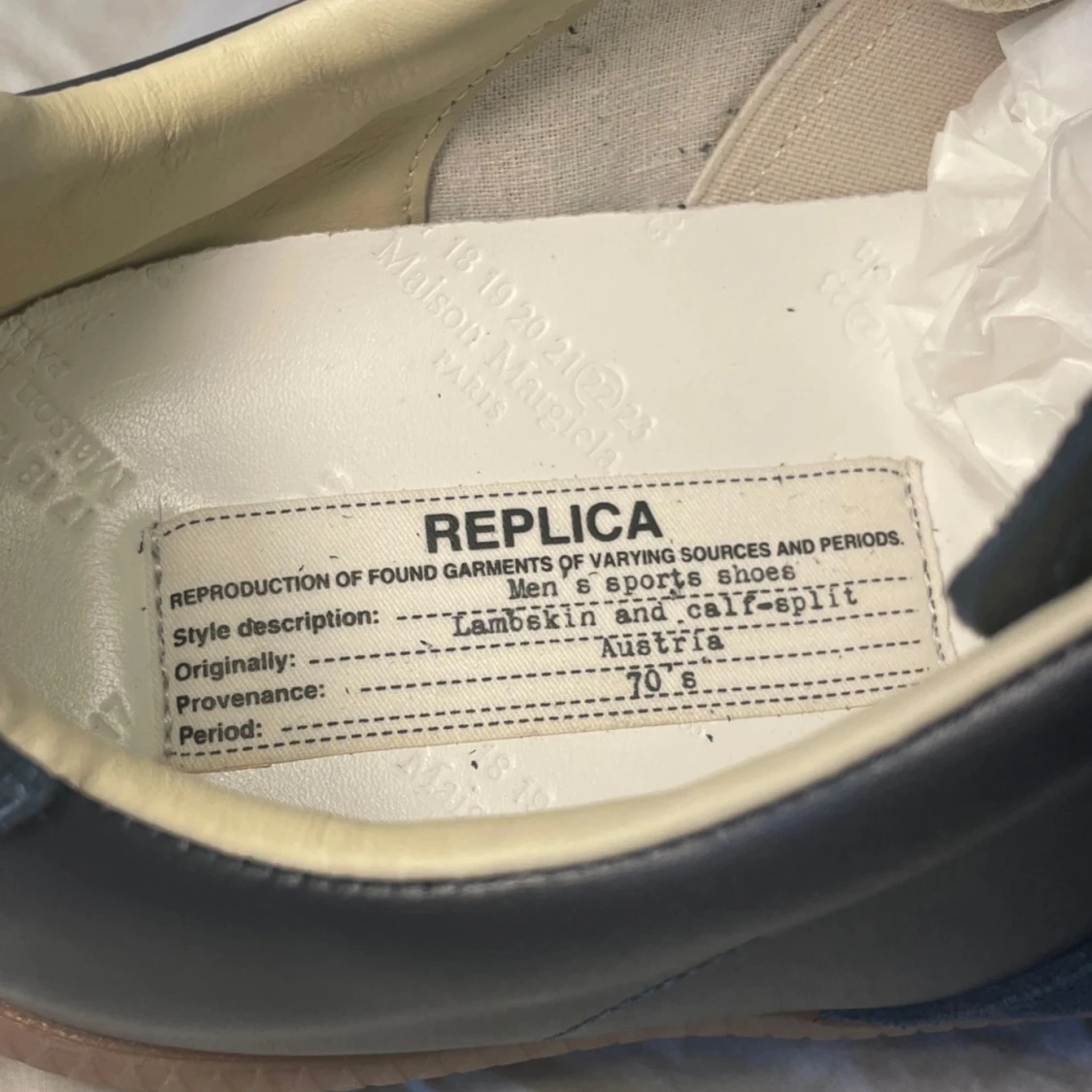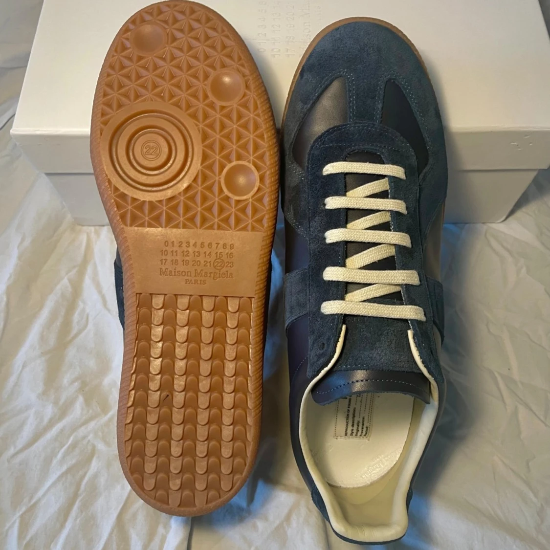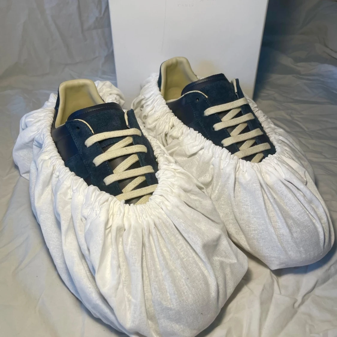 Ett par marinblåa Maison Margiela skor. Storlek 42 men passar även 43. Helt oanvända och i strålande skick. Dustbags ingår. Priset är inte hugget i sten!