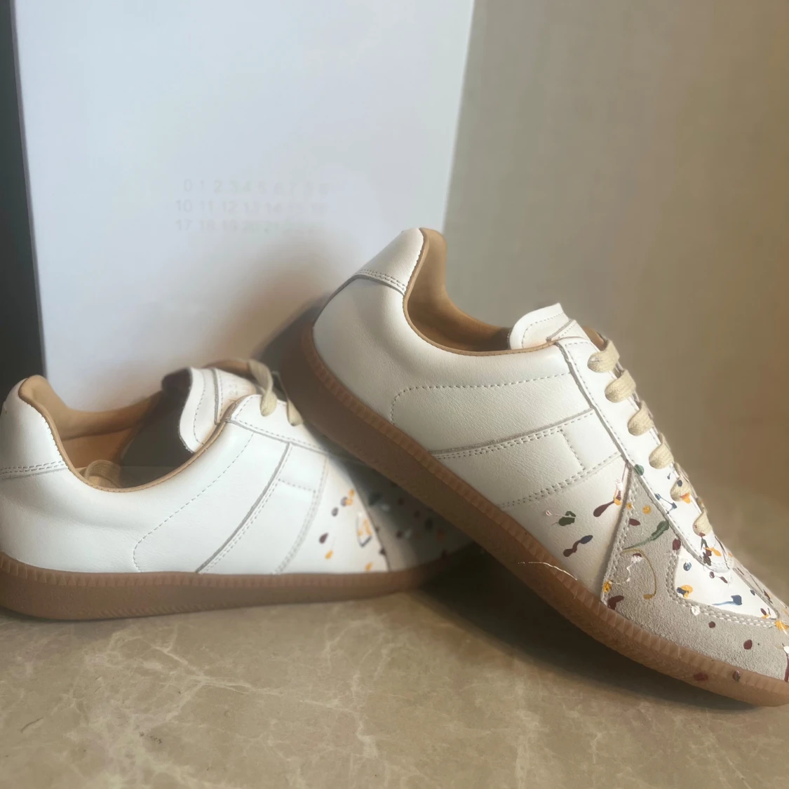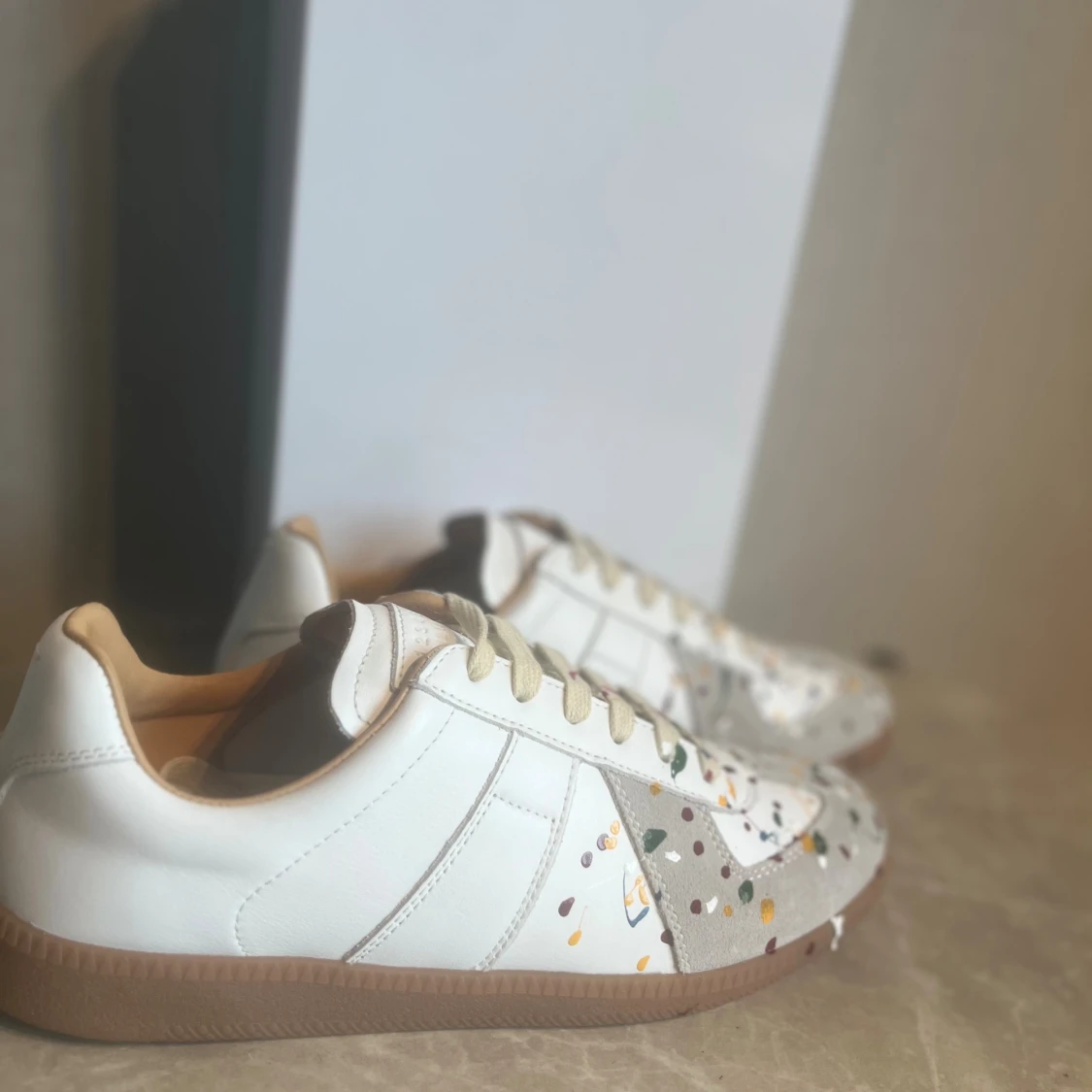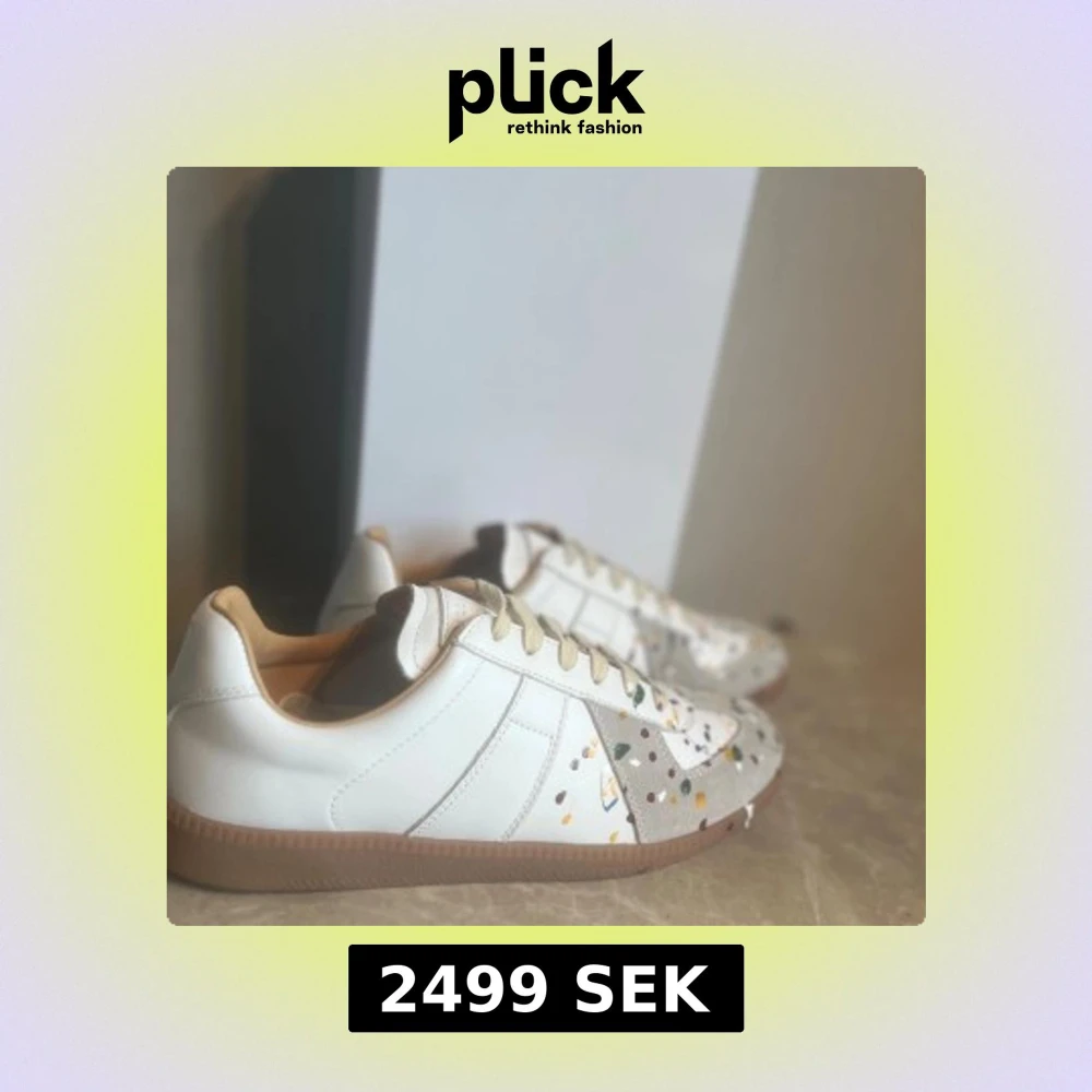 Säljer ett par Maison Margiela sneakers i storlek 42. ✔️ Äkta, exklusiva och ikoniska ✔️ Fint skick – sparsamt använda ✔️ Bekväma och lätta att matcha Perfekt chans att få tag på ett par designer-skor till ett bättre pris 👟 (Priset kan självklart sänkas vid snabb och smidig affär)