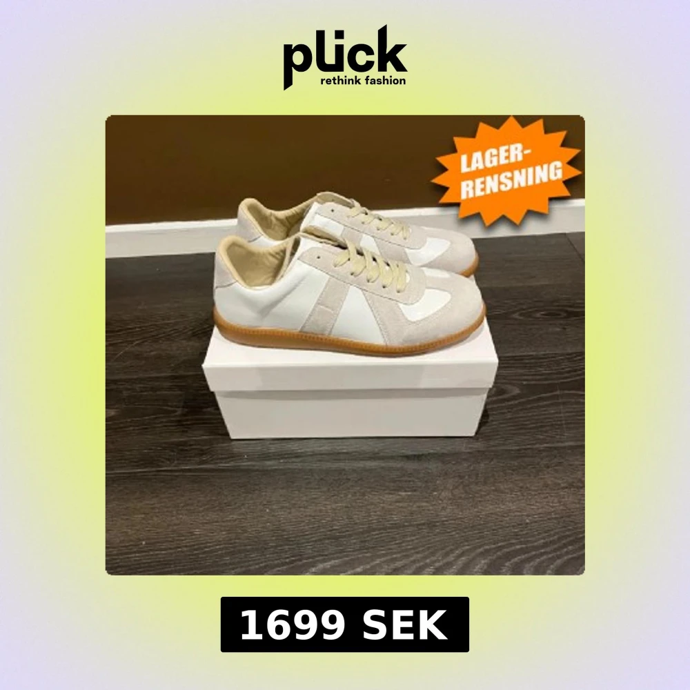 Säljer ett par maison margielas Gats, strl 44 vit. Passar med många outfits och är sköna. Skriv vid frågor! Även dustbag och låda medföljer!