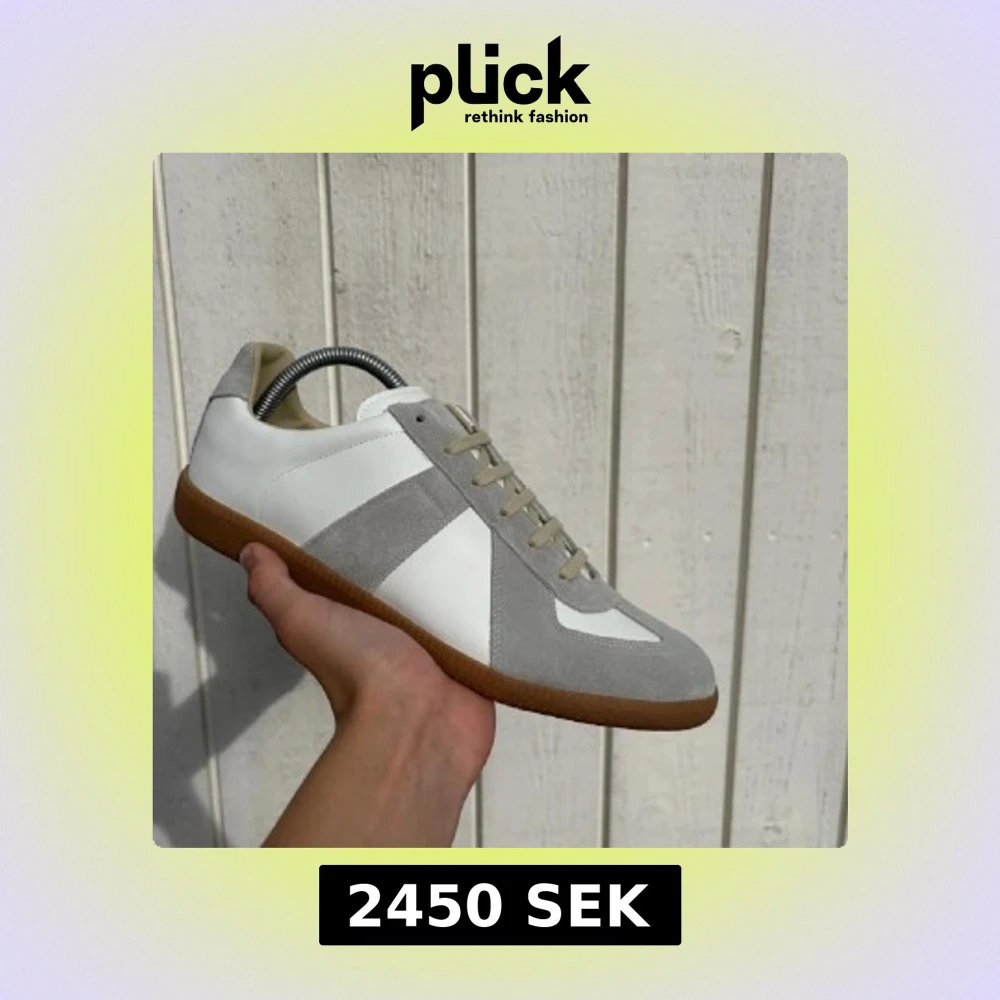 Maison Margiela GATs i storlek 44. Helt nya och oanvända. Klassisk modell i vitt skinn med grå mockadetaljer och gummisula. En både trendig och classy sneaker som passar till allt från jeans till kostymbyxor. Säljer då de blivit liggande. Pris kan diskuteras vid snabb affär
