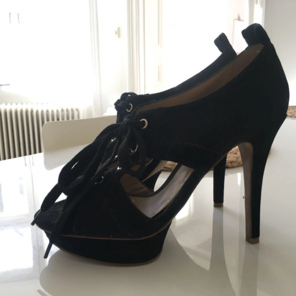 Säljer ett par fina klackskor i mocka från Mango Basics. Använda två ggr så i väldigt bra skick. Själv har jag en 38-39 i skostorlek, beroende av skomodellen. Platå framtill som gör skorna bekväma. Swisch föredras. Hämtas i Sthlm City