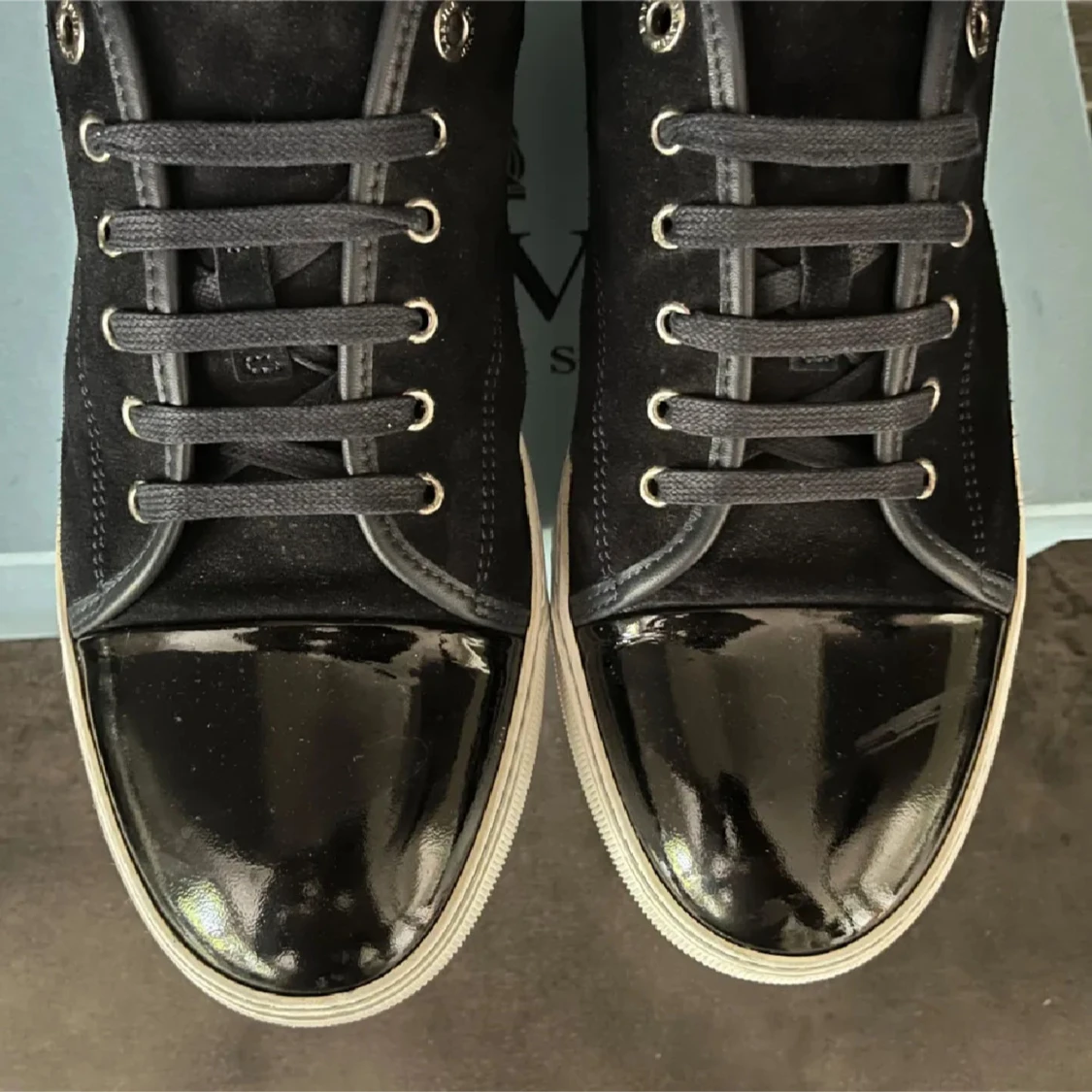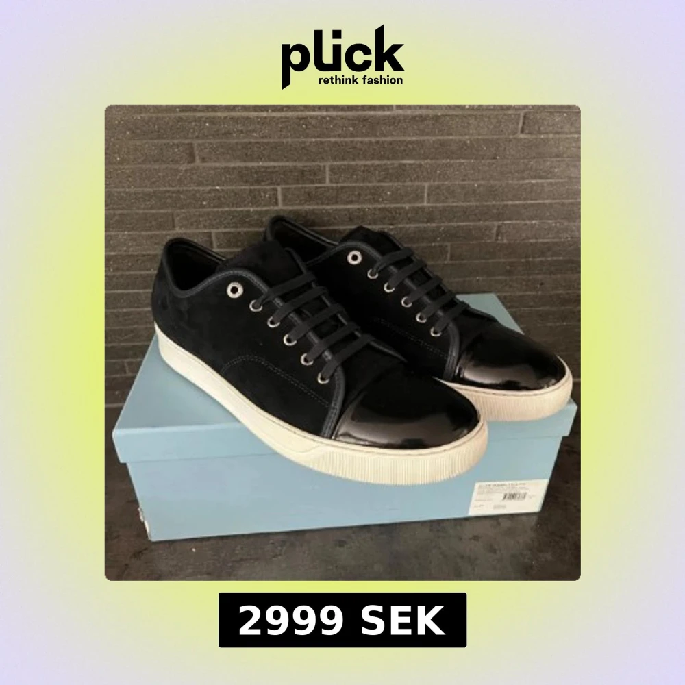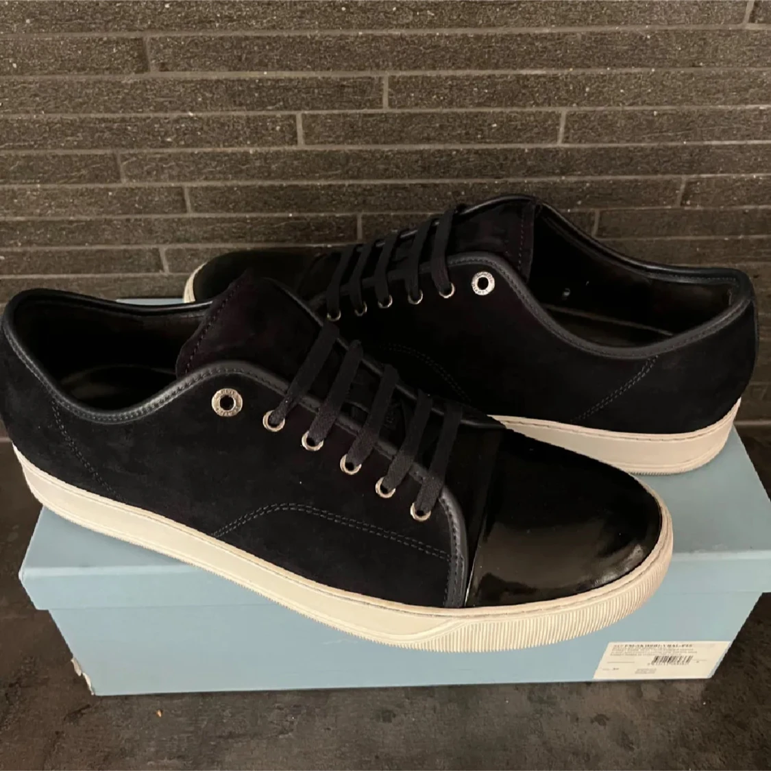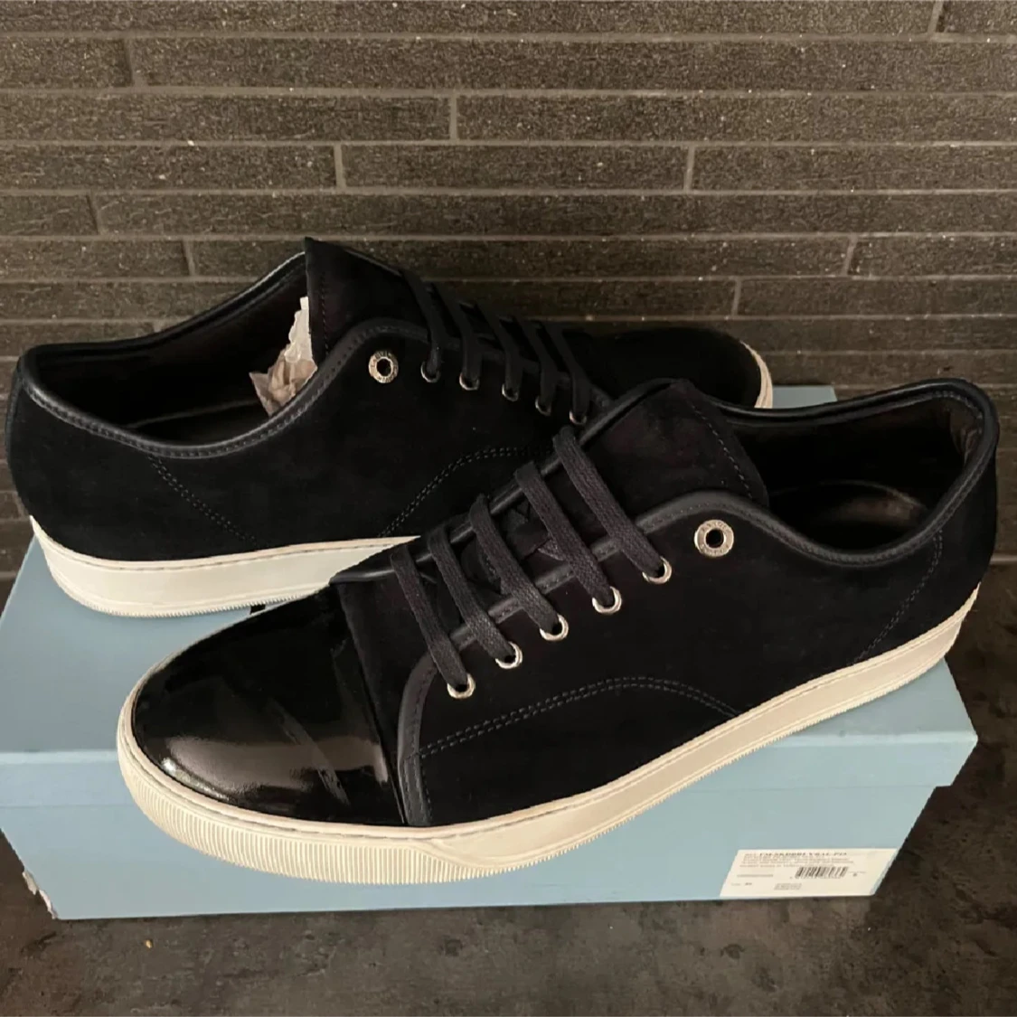 Snygga marine blå sneakers med vit sula och cool lackad tå. Ovandelen är i mocka och detaljer i skinn. Perfekta för dig som vill ha en stilren men ändå unik look. Storlek Uk 11 passar 44-45