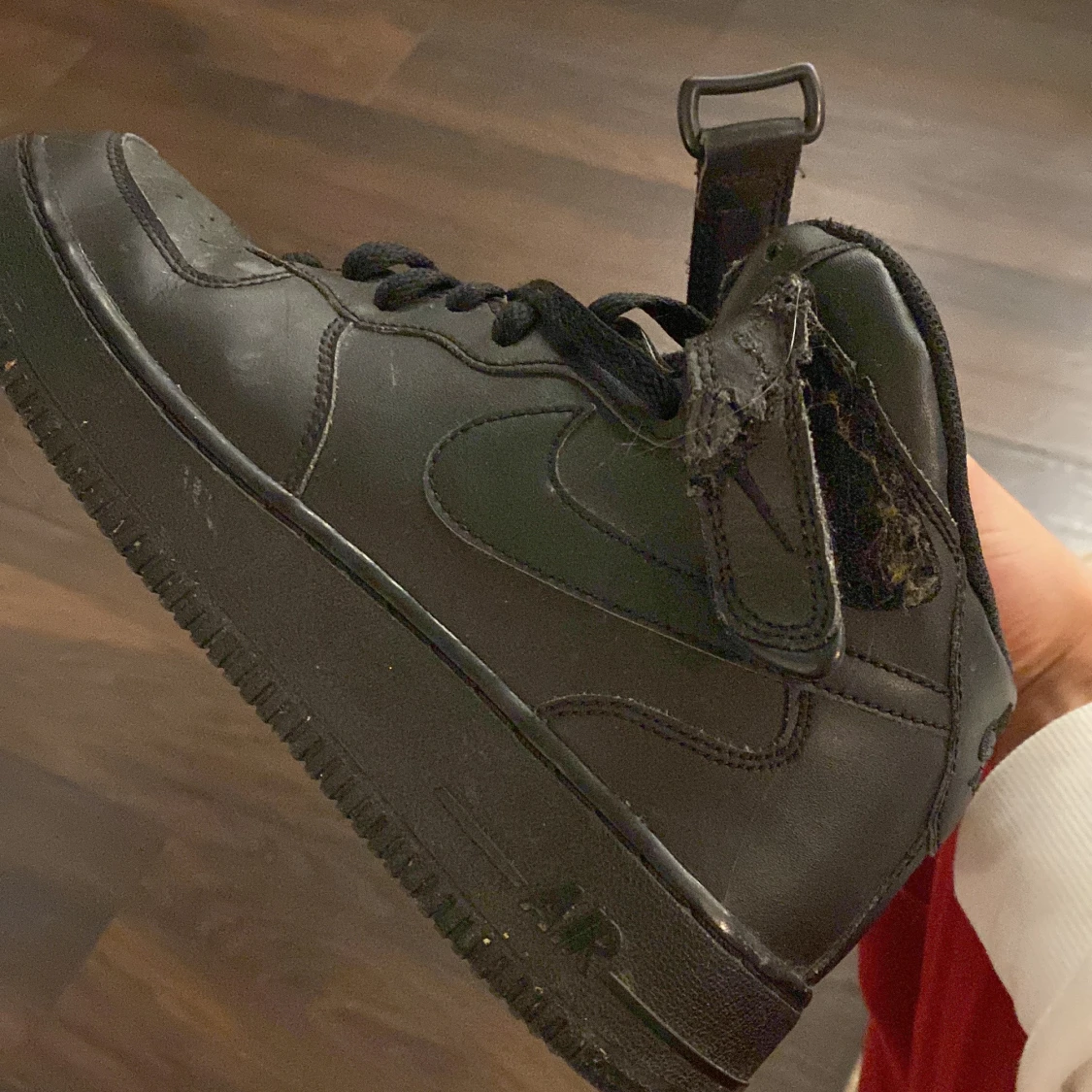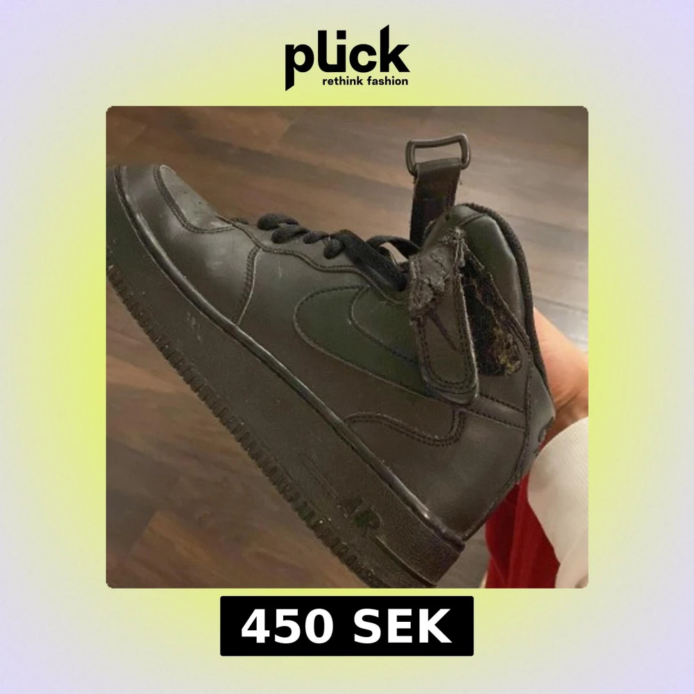 Svarta höga Nike air force 1. Storlek 40 men passar 39 då det är 25 cm innermått Använda en säsong, spännet på ena skon är trasigt