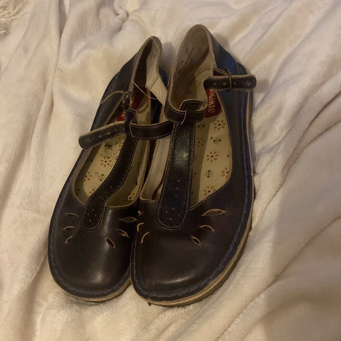 Sååååååå söta skor som tyvärr inte passar. Det är lite av ett mysterium vilken storlek dem är. Det ända som står är UK 5D men jag vet i alla fall att de är för stora för en strl 37 och för små för en strl 40 så ca 38/39!!! Skriv gärna om ni vill ha fler bilder eller vill att jag ska mäta eller har några andra frågor <3