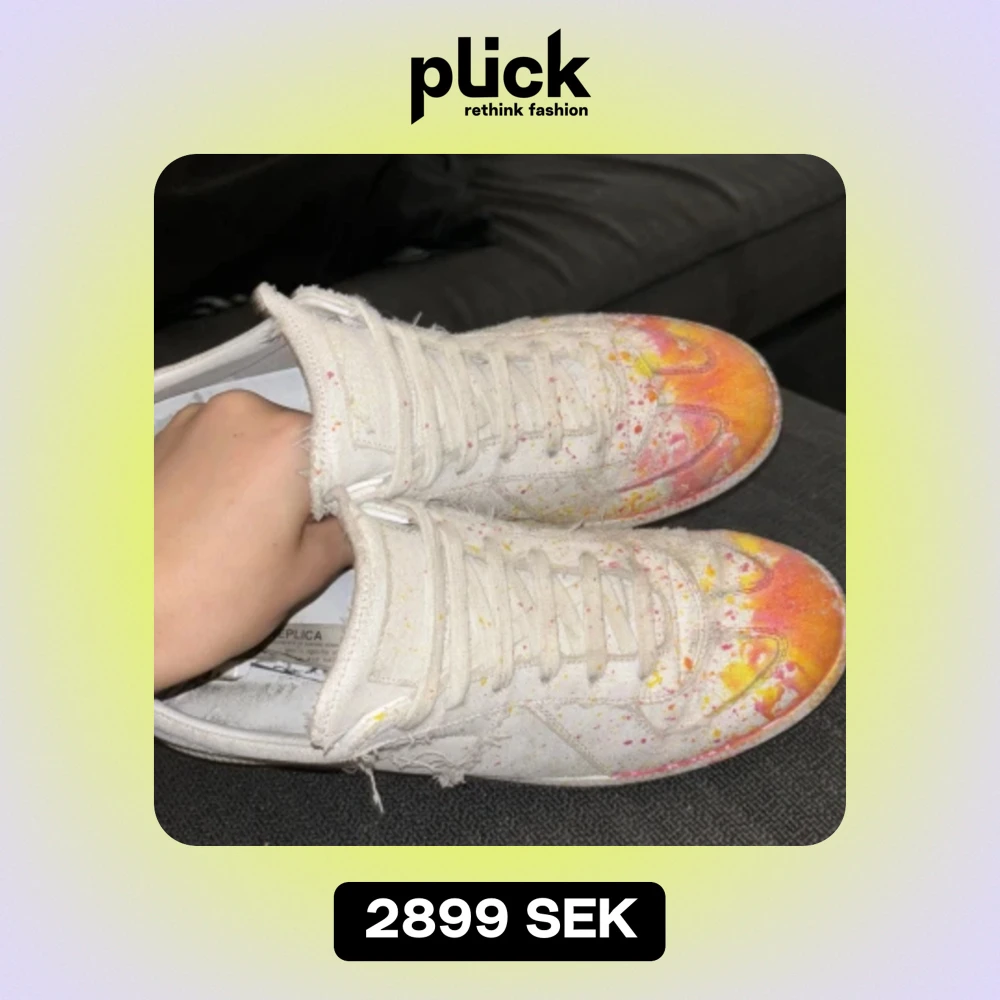 Tjena! Jag säljer ett par masion margiela gats i storlek 43, skick 7,5/10 men ni får självklart avgöra själva. Det följer med Box, dust bag och allt sånt. Priset kan självklart diskuteras, om ni har frågor eller annat skriv gärna till mig!