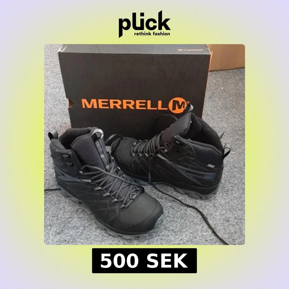 Skor är helt nya och prislappen finns kvar. Svarta Merrell Thermo Freeze Tall WP boots med grov sula och snörning. Skorna är vattentäta och har robust design med förstärkt tå och häl. Perfekta för kalla dagar och utomhusaktiviteter. Tillverkade i syntet och skinn för extra slitstyrka. Skor köps för 1150 kr.