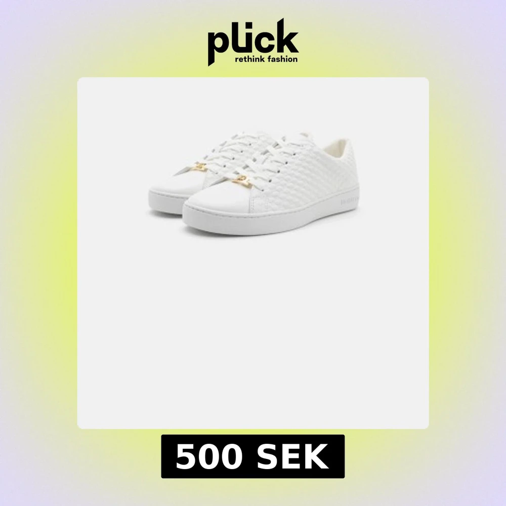 Snygga vita sneakers från Michael Kors med flätad struktur på sidorna och guldfärgade MK-detaljer vid snörningen. Skorna har rund tå, platt sula och är tillverkade i skinn med textilinslag. Perfekta för dig som gillar stilrena och exklusiva detaljer.