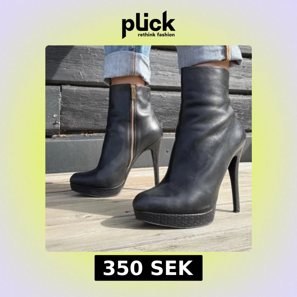 Snygga svarta stövletter från Michael Kors i skinn med guldfärgad dragkedja på sidan. Skorna har hög klack och plattform med diskret mönster. Rund tå och stilren design som ger en cool vibe till din outfit.Michael Kors sko stl38 (24,5 cm innermått) Skinn Klack 14 cm/lätt platå Nyskick. Sparsamt använda Vackra detaljer-gulddragkedja Ingen dålig lukt eller så.