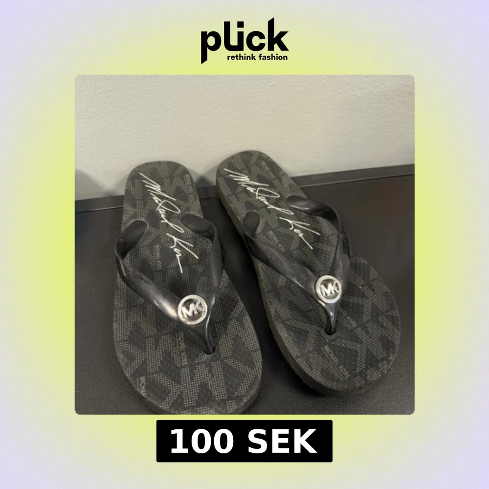 Säljer nu mina fina svarta flip-flops från Michael Kors med mönstrad sula och tydlig logga i silver på remmen. Snyggt diskret mönster med MK-tryck och signatur på sulan💗💗