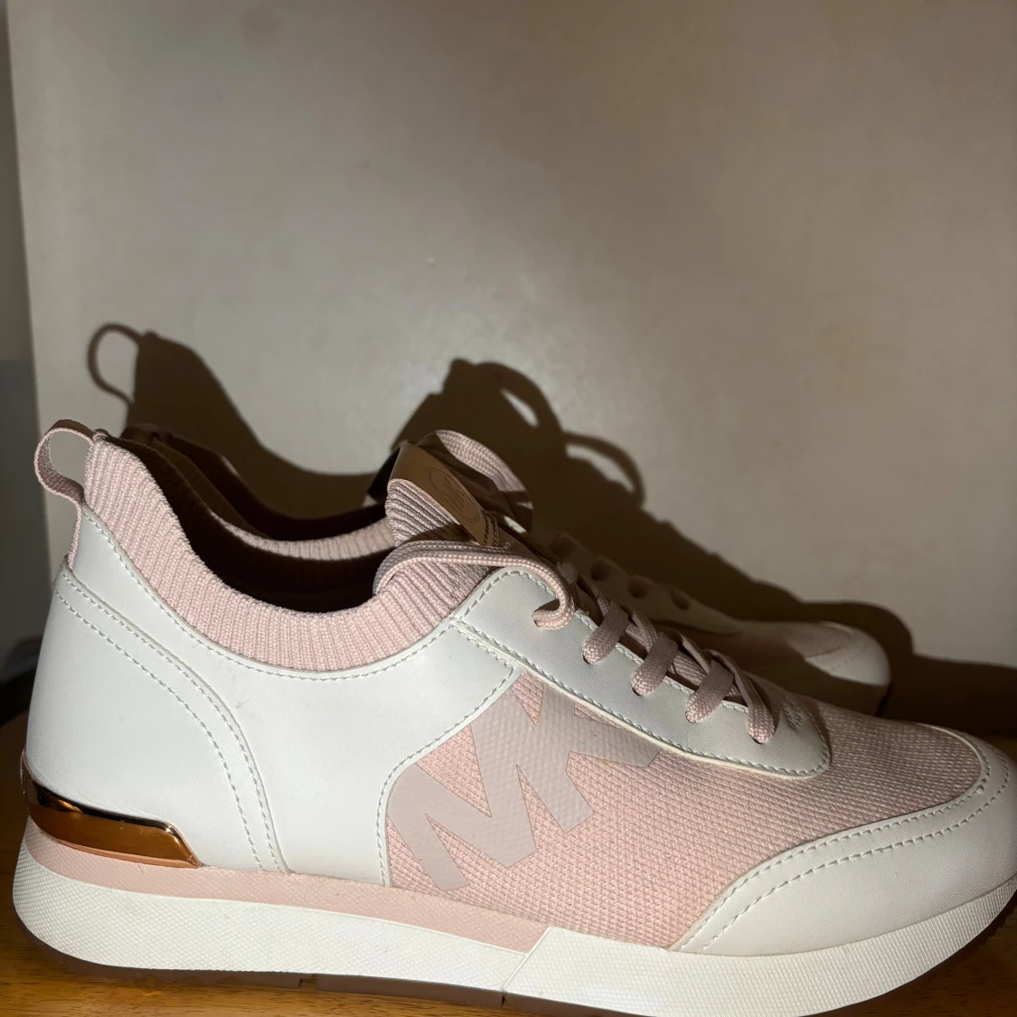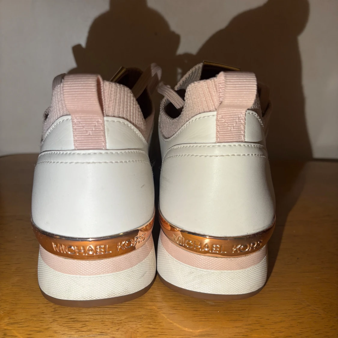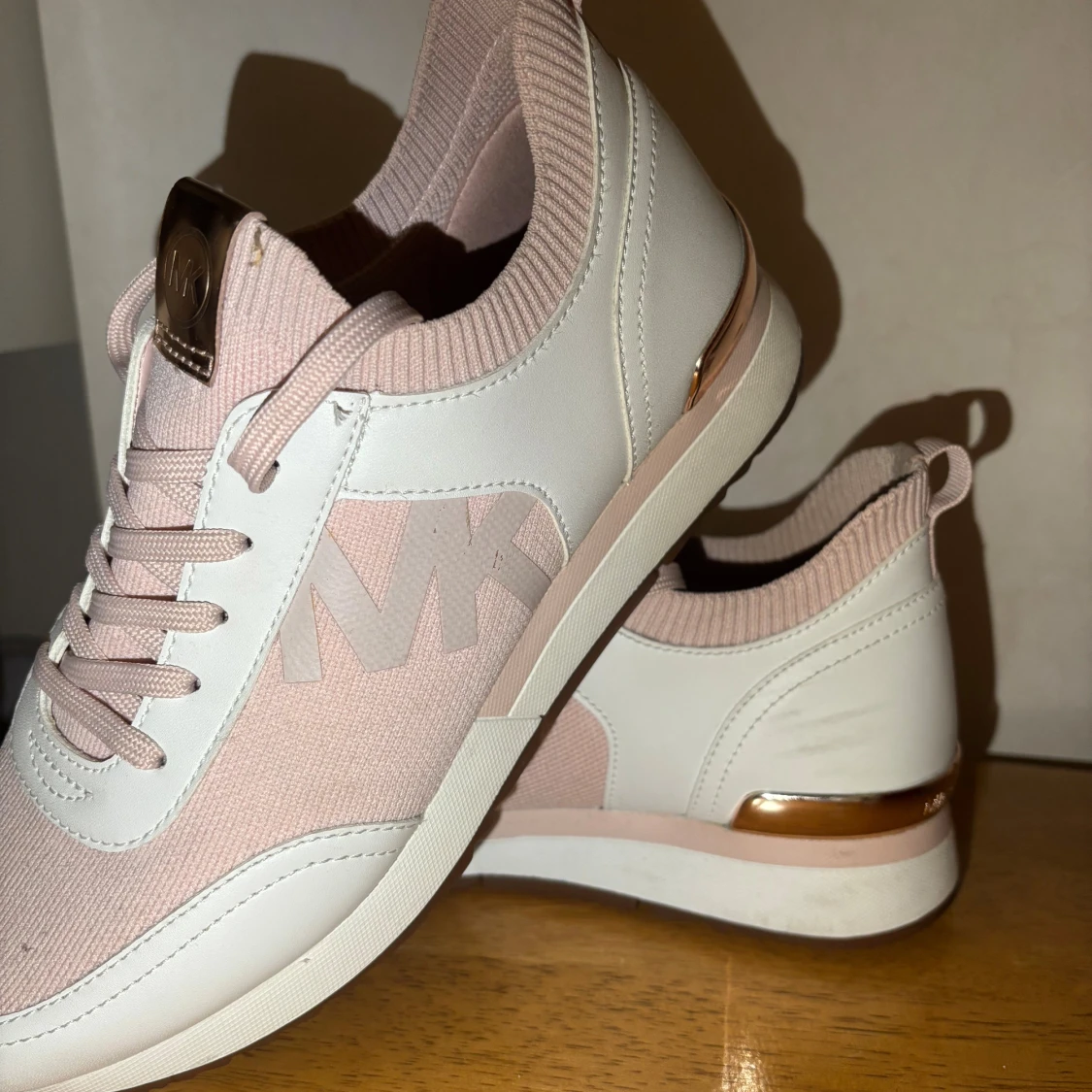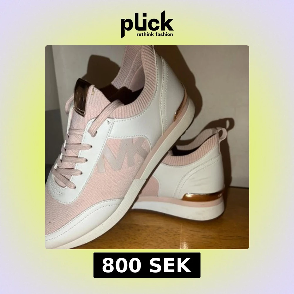 Helt nya Snygga sneakers från Michael Kors i ljusrosa och vitt med guldiga detaljer vid hälen. Skorna har stickad textil upptill, skinnimitation på sidorna och tydlig MK-logga. Perfekta för dig som vill ha en sportig men ändå trendig look.- kan gå ner i pris vid snabb affär - Finns i Göteborg - Kan även fraktas