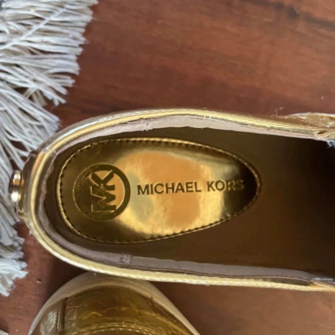 Ett par guldiga Michael Kors skor. Säljer eftersom de inte kommer till användning längre.