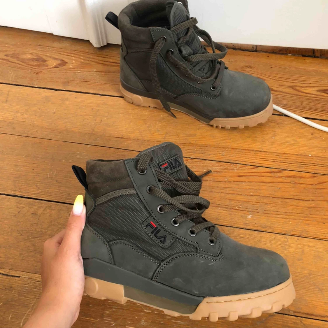 Kängor från fila använda ett fåtal gånger. VÄLDIGT bra skick. Små i storleken så passar som en 37 enligt mig. Säljer pga måste bli av med kläder. Köparen står för frakten!! Kan även hämtas upp i Linköping. Betalning sker via swish.