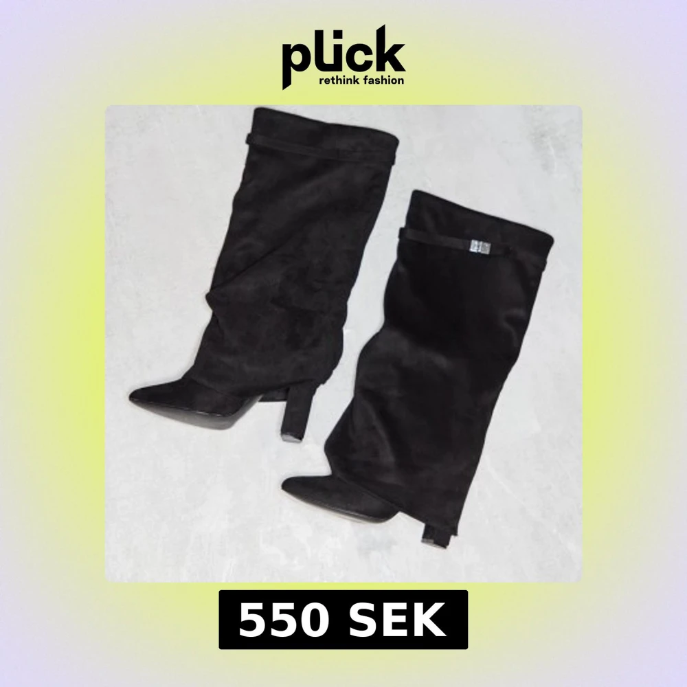 Svarta Boozt från prettylittlething storlek 38/5 Dem är använda 2 gånger så väldigt bra skick Säljer då dem tyvärr inte kommit till användning så mycket som jag önskat 🩷 Köpta för £65 vilket är ca 845 SEK. Har köpt som ilägg att ha på dig för att ej lägga så mycket vikt på trampdynan om man går under längre tid som jag kan skicka med, oanvända. Klack 10 cm