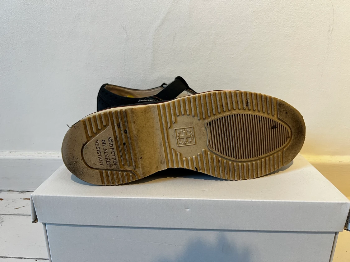 Mycket sparsamt använda Mary-Janes från Dr Martens i grå mocka, strl 37 (något större i storlek, mer 37.5) Modellen heter Isabel