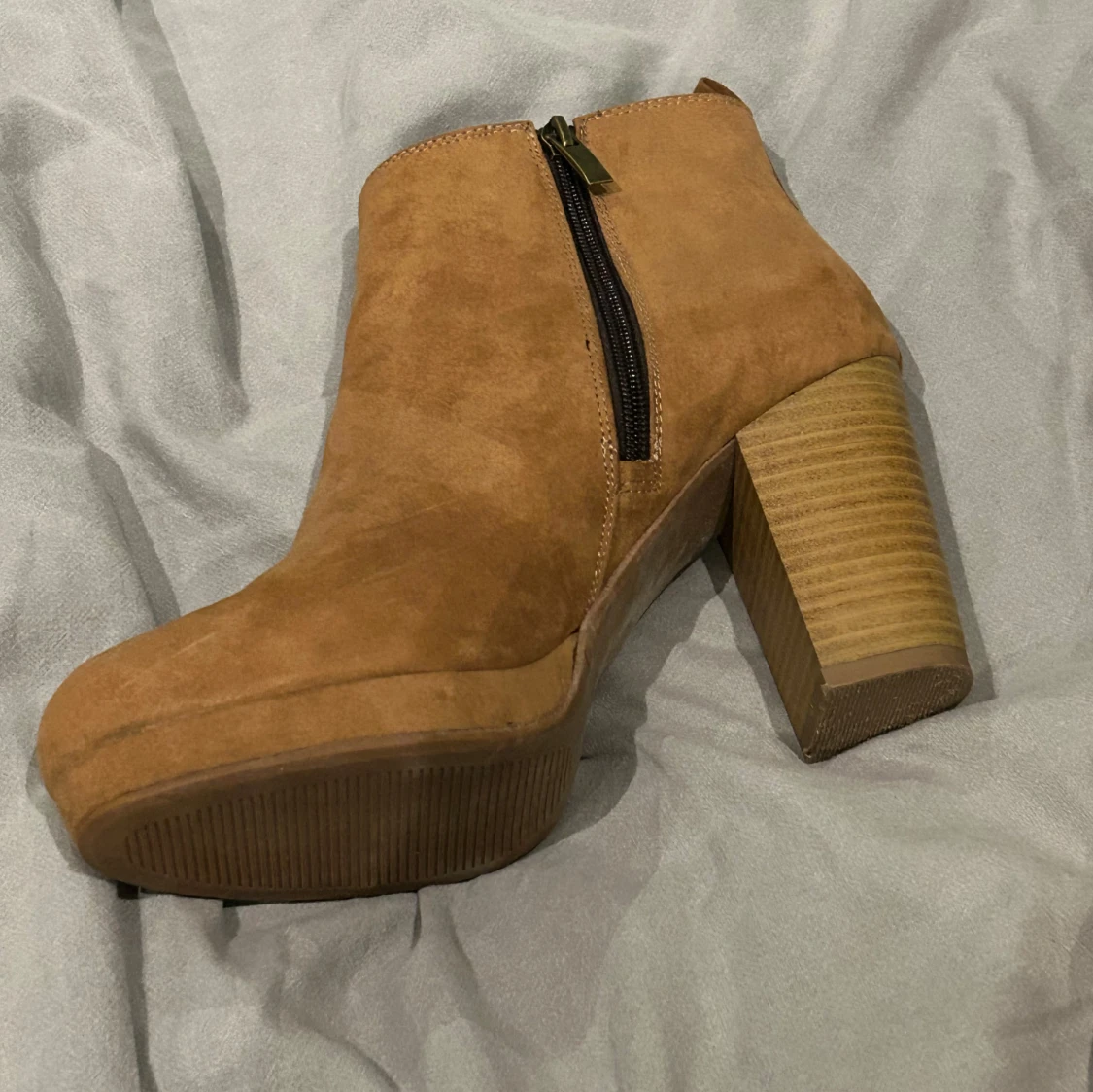 Snygga bruna stövletter i mocka från Attitude med chunky klack och dragkedja på sidan. Skorna har rund tå och är i storlek 41💕