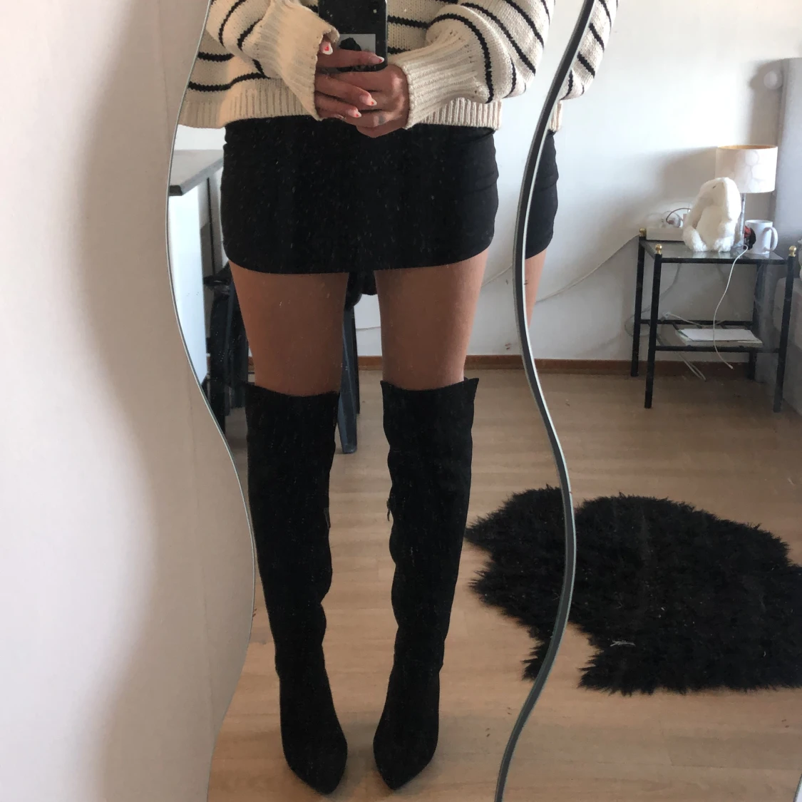 Aldrig använt, skorna är gjord av mocka och det står strl 39 men passar dom som har 37 möjligen 38 om man har tunna strumpor