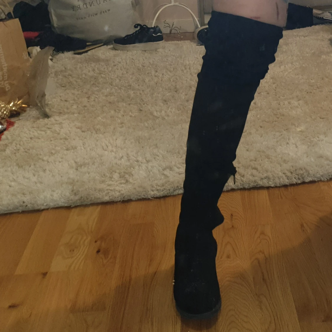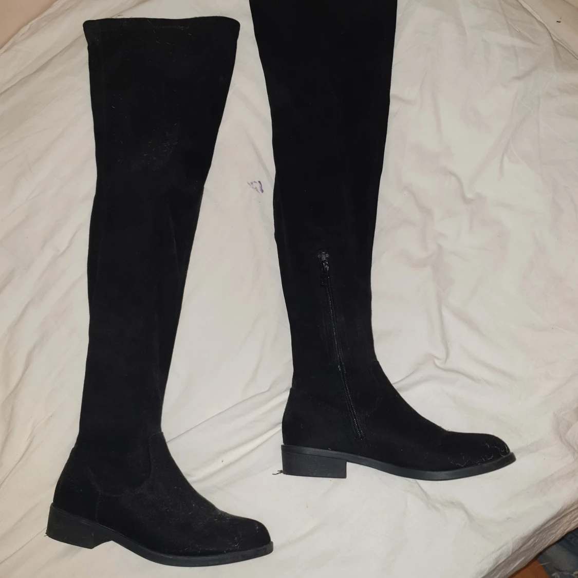 Ett par knälånga skor i mockaimitation, använda fåtal gånger då de inte är min stil. De är i storlek 35 och bra skick. Säljs för 250 kr ❤
