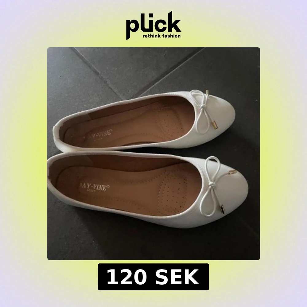 Snygga vita ballerinaskor med rund tå och dekorativ rosett framtill. Skorna har en klassisk och stilren design med mjuk innersula och är jätte sköna. Perfekta att matcha till både jeans och klänning. Knappt använda