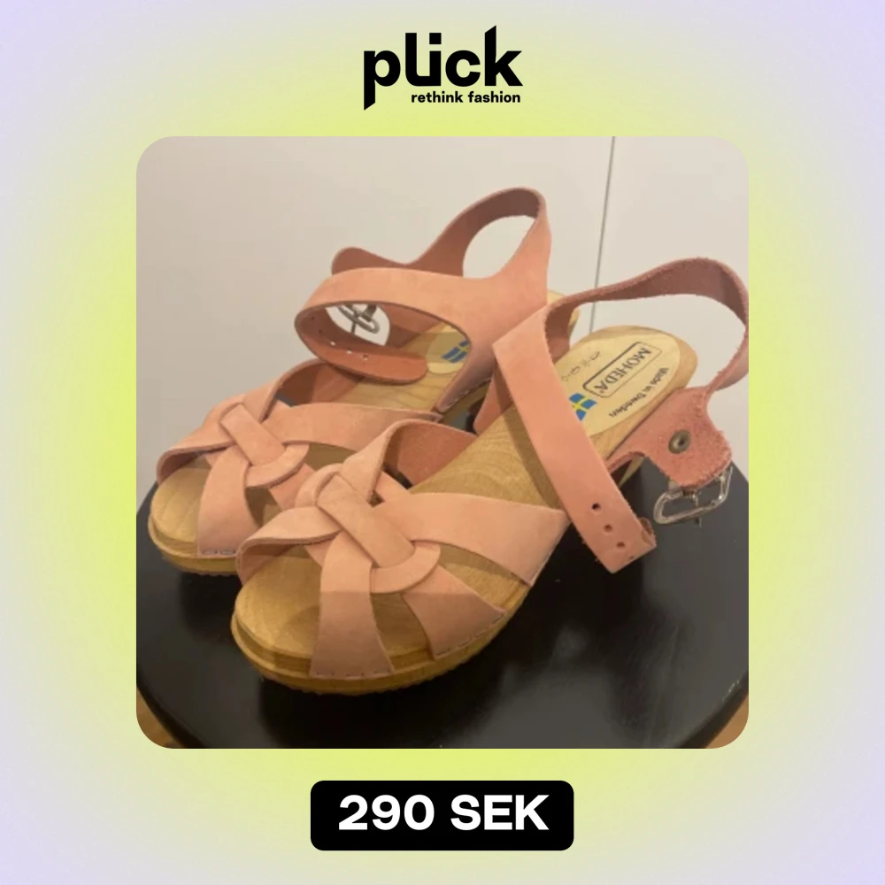 Träsandaler med klack från moheda, ljusrosa skinnremmar, strl 36 (något stor), så gott som nyskick.