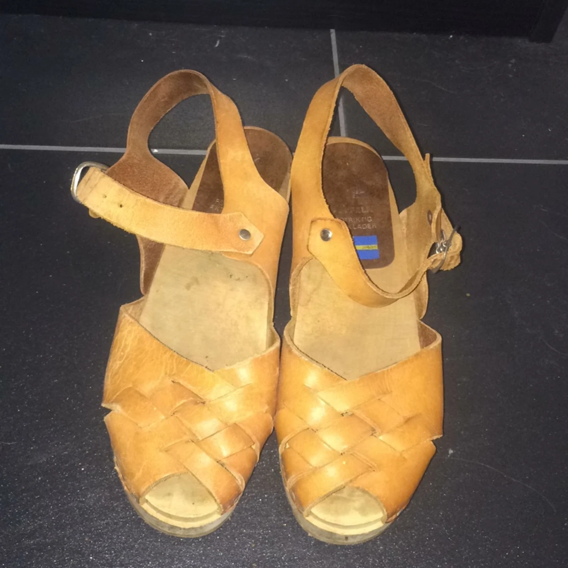 Mohedatofflor/klackar i äkta läder. Använda men i fint skick