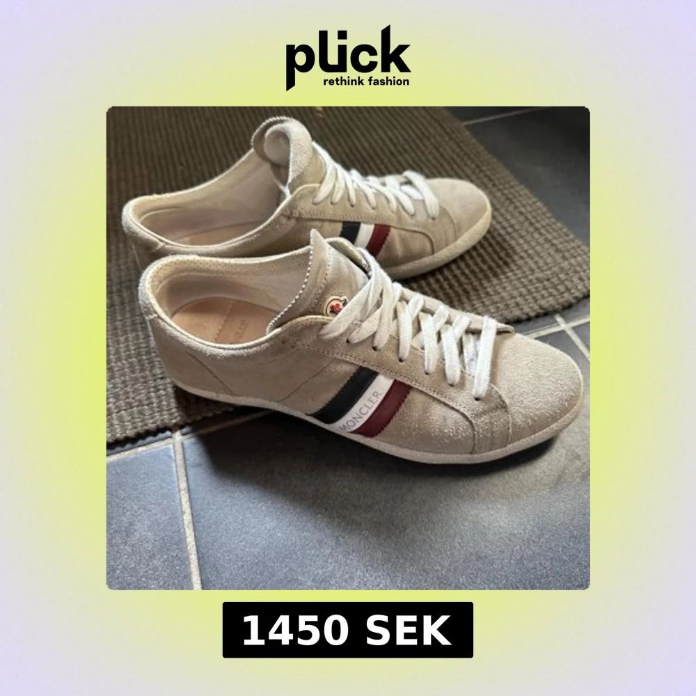 Snygga beige sneakers från Moncler i mocka.Det är snören men dem e på tvätt.Storlek 41 passar 42.Endast skor.Så lågt pris pga en lite organe fläk snör hålen.Ge pris förslag!