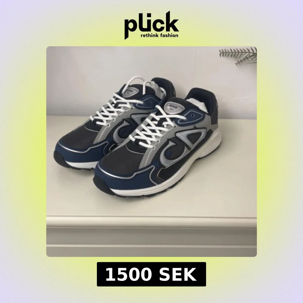 Säljer ett par snygga sneakers med reflekterande detaljer, vita snören och robust sula. Skorna har en mix av blått, grått och svart med stora CD-loggor på sidorna. Ovandelen är i mesh och syntet, perfekt för dig som vill sticka ut med stil.