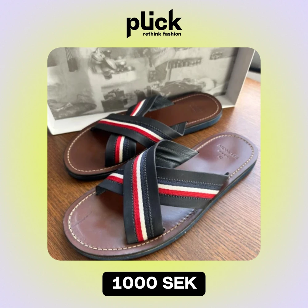 Moncler sandaler i läder. Finns en liten skada framtill (se bild).