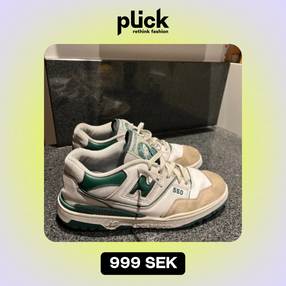 Tja! Säljer nu mina snygga och exklusiva New Balance 550 i färgen White/Green på grund av att dom inte kommer till användning längre. Dem är använda men i bra skick skulle säga 7,5/10 och är nytvättade och redo för anvädning. Ny pris runt 3600 kr.