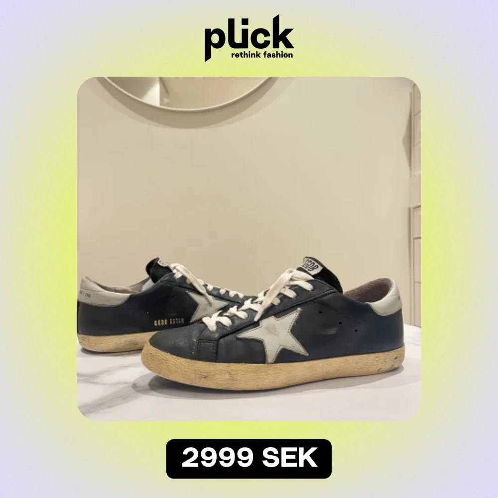 Säljer dessa marinblå golden goose i sällsynt och snygg colorway i 8/10 skick, lite creesade och lite slitna i hälen. Storlek 41 men passar mig som har 42,5 perfekt! Öppen för byten mot andra skor men inga lanvins tack!